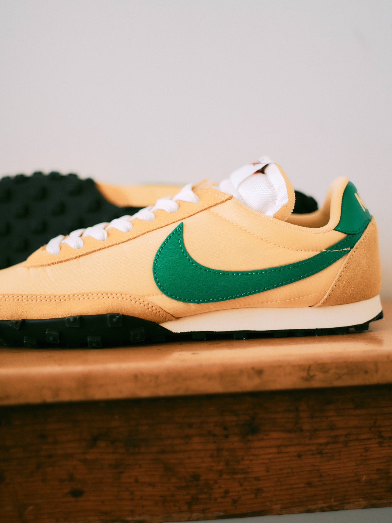 モカシン風のアッパーやアイコニックなワッフルソールなどのオールドスクールなランニングディテールと、フレッシュな色や快適なフォームミッドソールなどのモダンな要素を組み合わせた「ナイキ ワッフル レーサー」の新作。スエードのアッパーがレトロなスタイルと履き心地を実現。フォームを使用したミッドソールはクッショニングとサポート性抜群。特徴的なラバーワッフルアウトソールは優れた耐久性とあらゆる地面でグリップ力を発揮する。