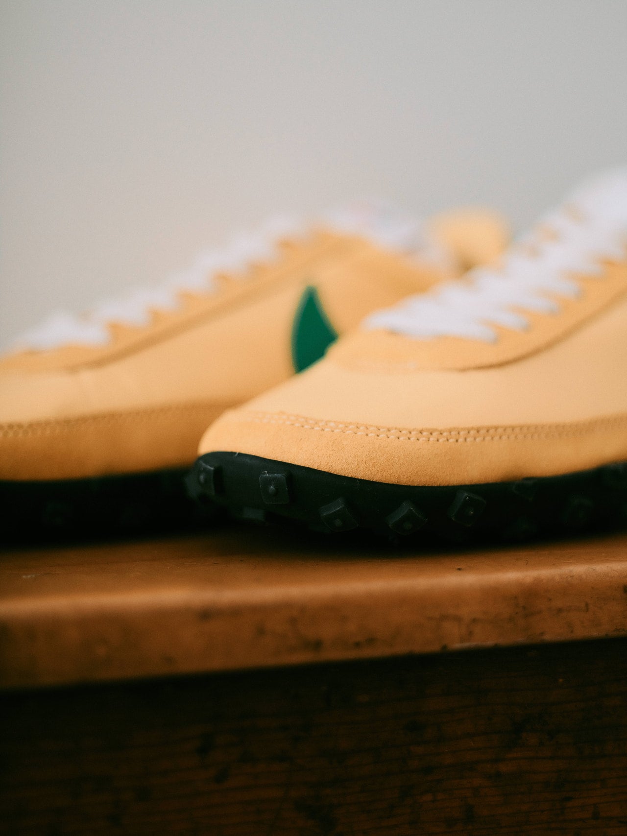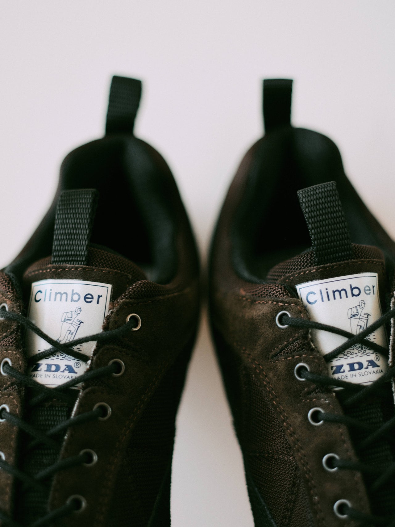 1950年代~1980年代、まだチェコスロバキアだった時代のパルチザンスケという小さな町で生産されていたシューズブランドのZDA。当時のソールや型、そして製造していた機械が現存していたことをきっかけに、2016SSシーズンより復活。当時の機械を用いて、ひとつひとつ丁寧にハンドメイドで生産されている。ランニングシューズモチーフのシルエットに、クライマー由来の素材とソールという組み合わせがおもしろい。