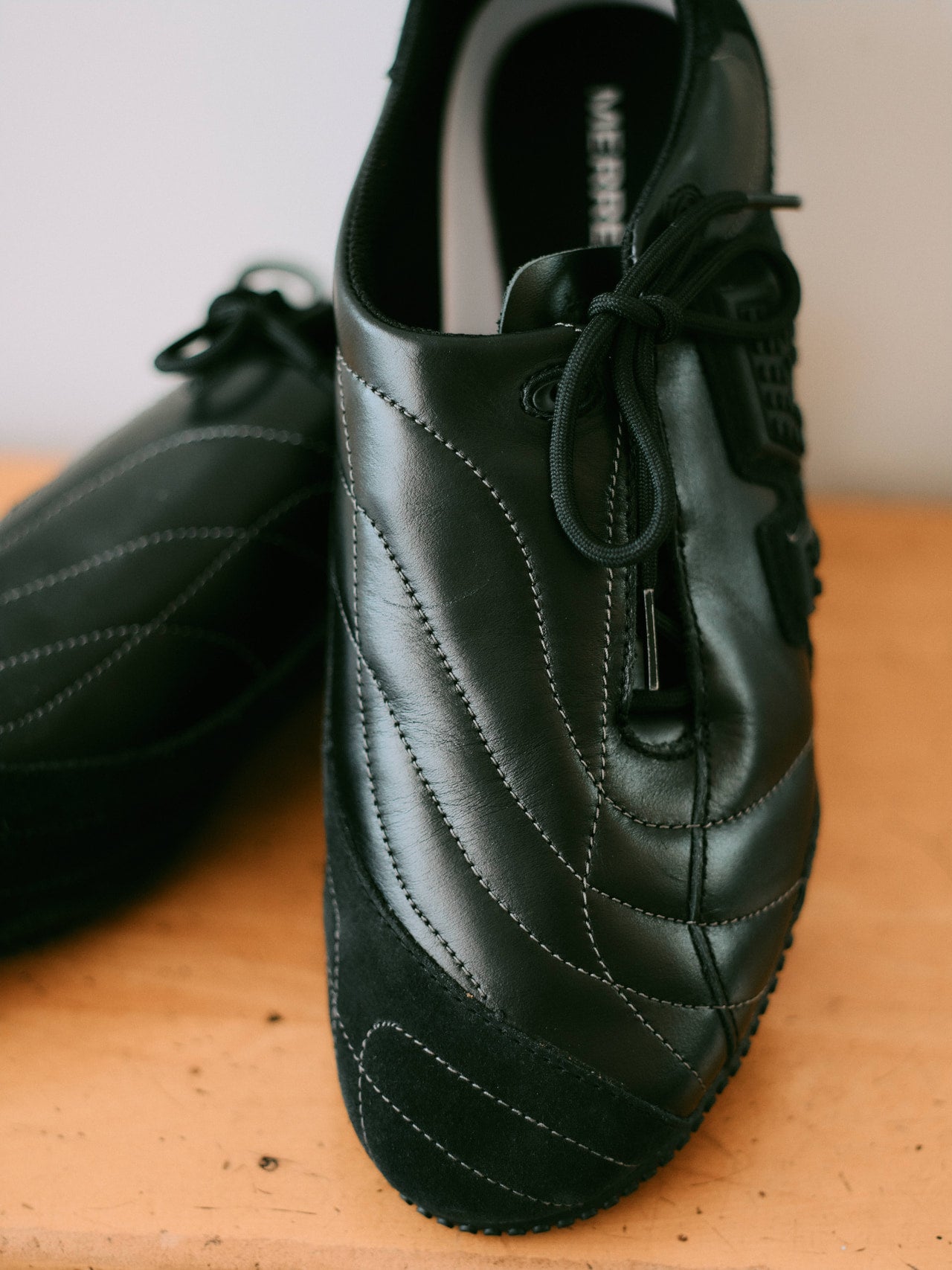 トラックシューズを想起させる軽快なシルエットに、トレイルから着想を得た実用性を掛け合わせた「RELAY WEB」。ロープロファイル設計に、上質なフルグレインレザーを組み合わせることで、クラシックな存在感と洗練された表情を両立。アッパーに大胆に配されたオーバーサイズの“MERRELL M”ロゴは、2000年代のスポーツカルチャーを想起させながら、現代的なストリートスタイルに強い個性を与えてくれる。
