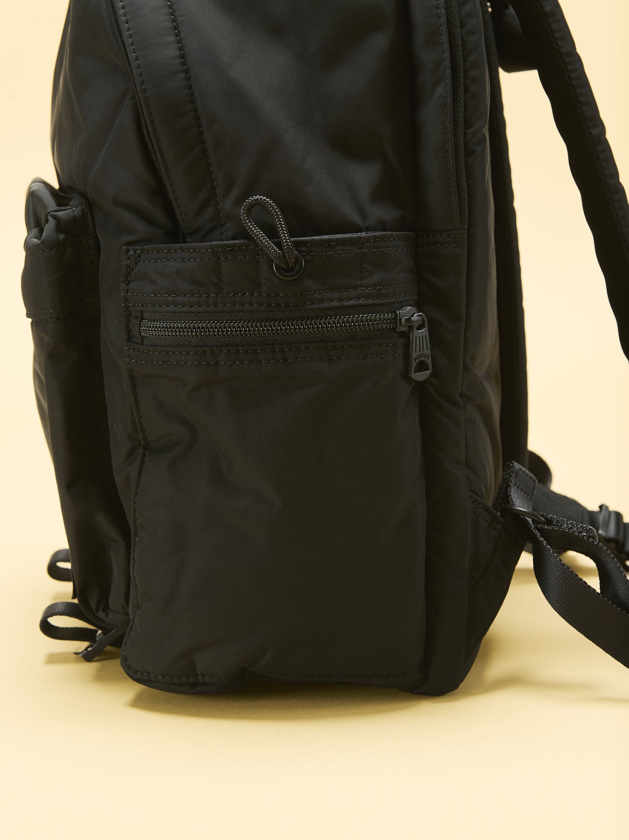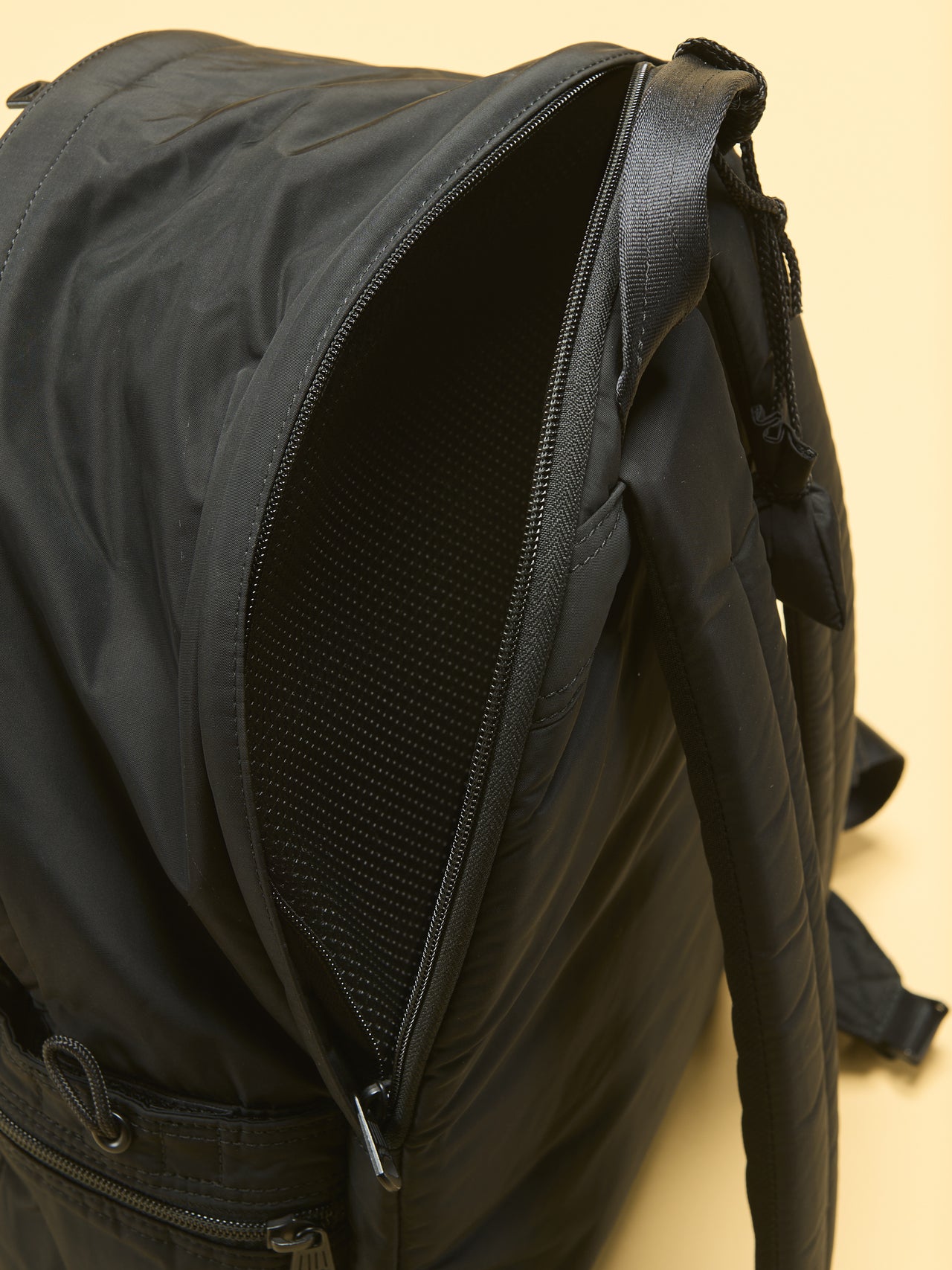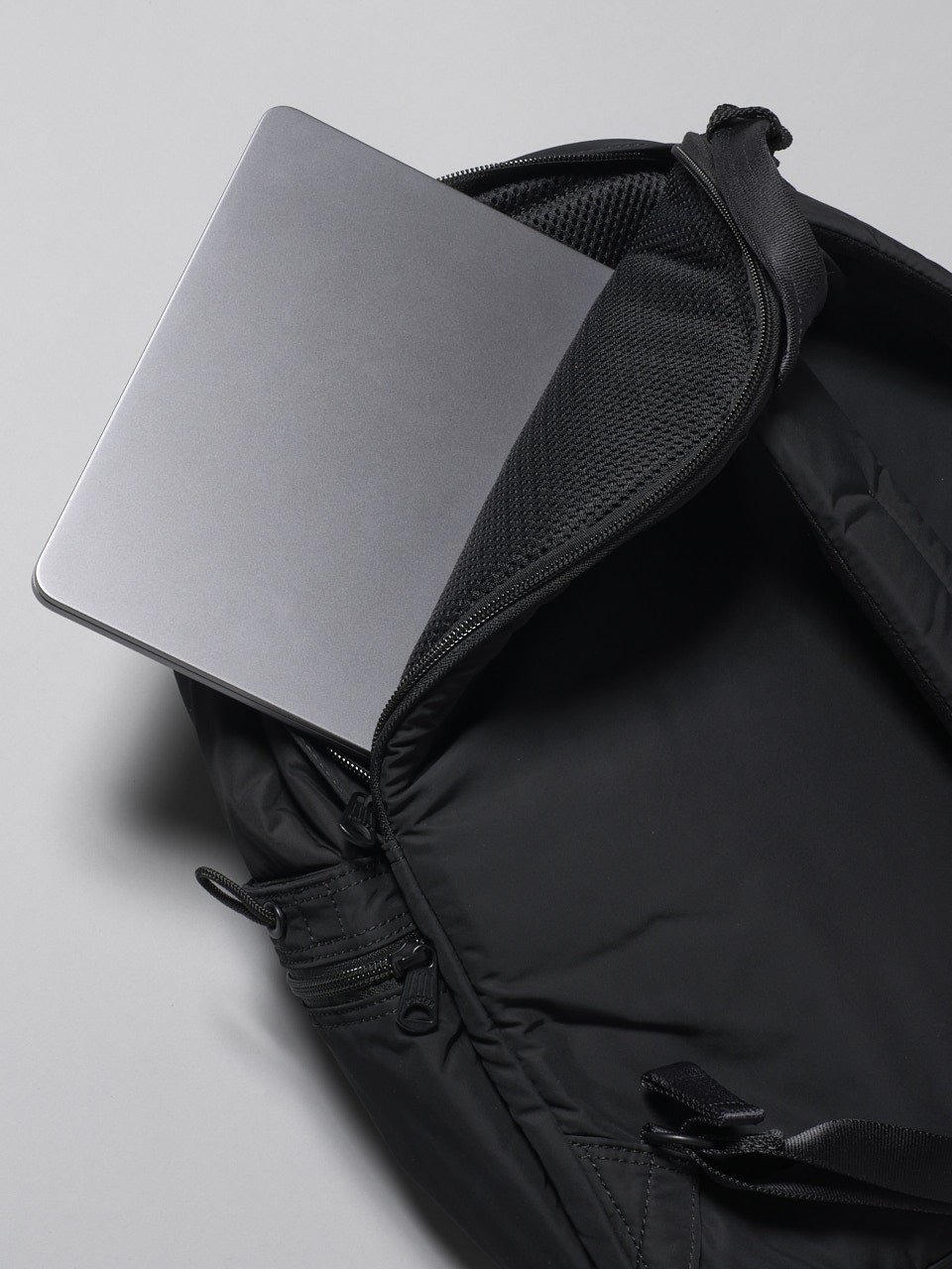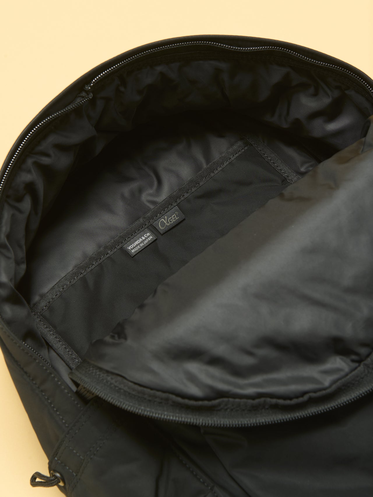 オン・オフどちらのシーンでも使える2層式のPORTER SENSES(センシズ)シリーズのデイパック。大容量のメイン層に小分けに便利な吊りポケットを備え、背面側には13インチのPCが収納可能なクッション材入りのポケットつき。柔らかな触り心地の多機能素材「αGEL(アルファゲル)」をハンドルやハーネス、肩パットに内蔵し、重さによってかかる圧力を分散し、疲れやストレスを和らげてくれるのもうれしいポイント。
