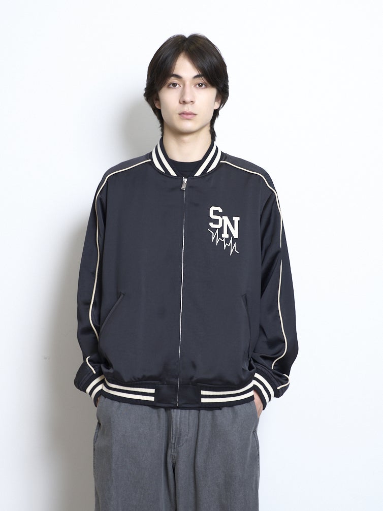 胸元・背中に本コレクションテーマ”Silent/Noise”を表現した刺繍ロゴをオン。
