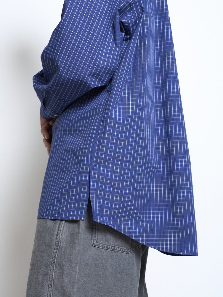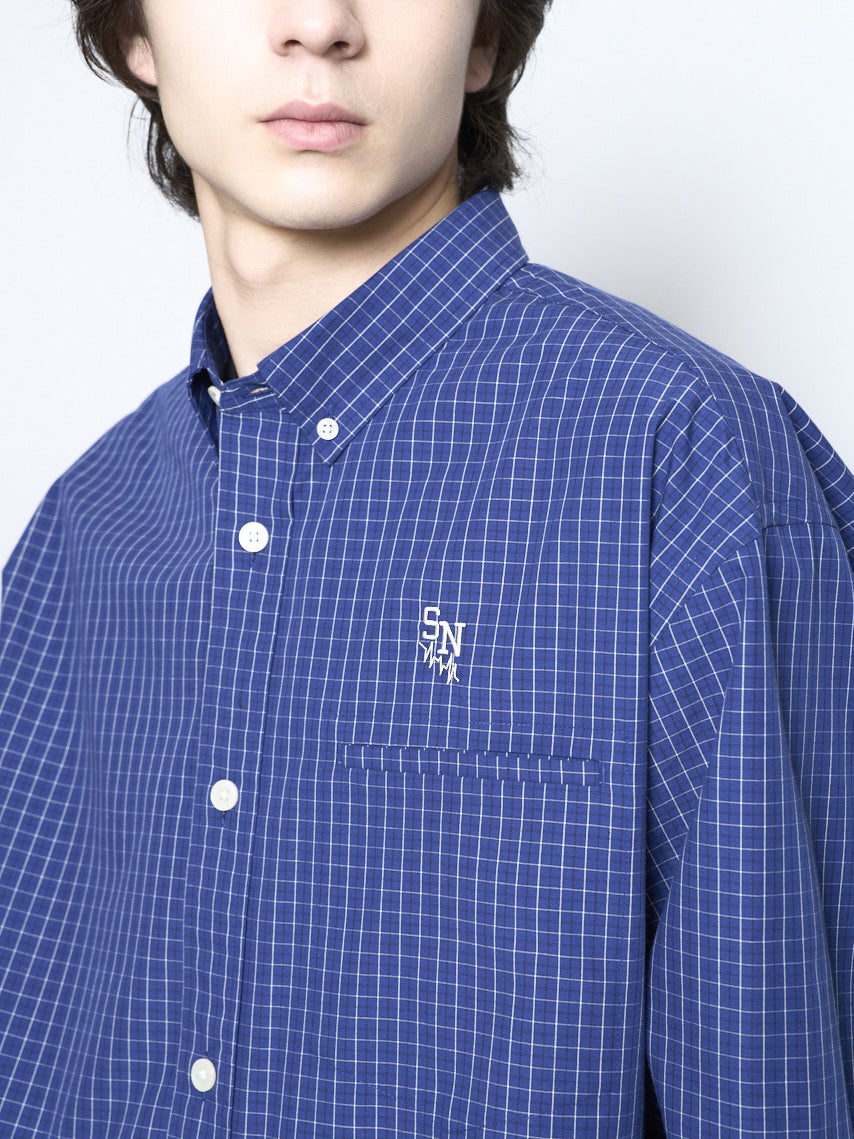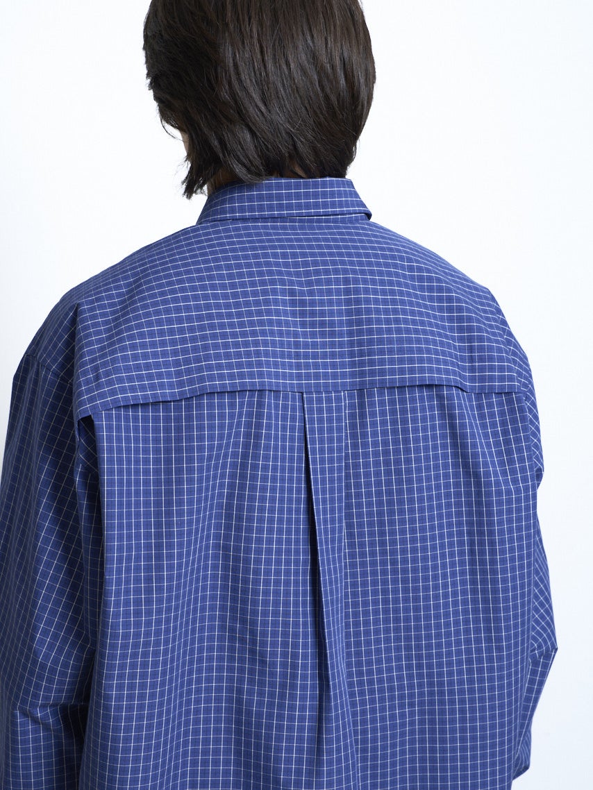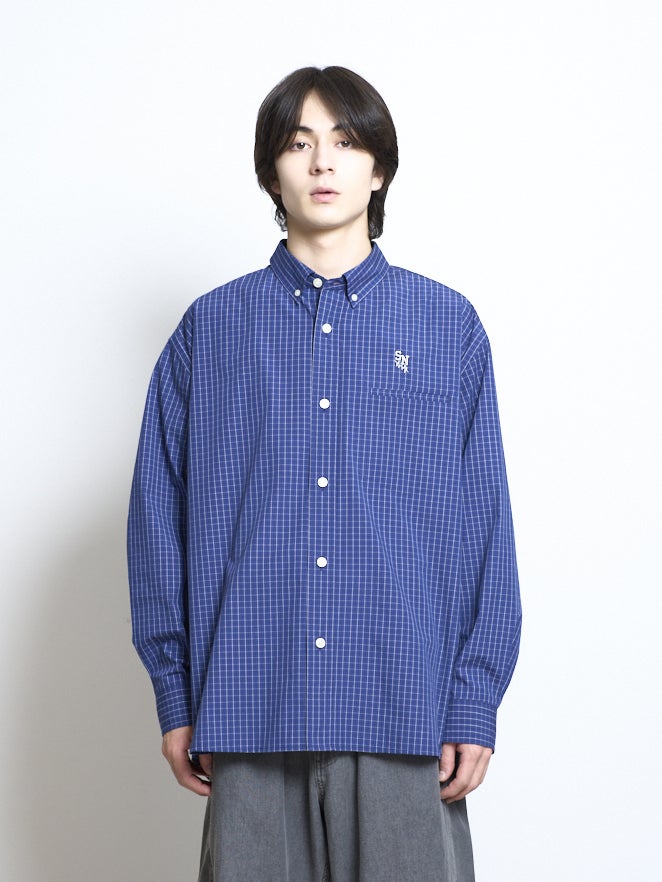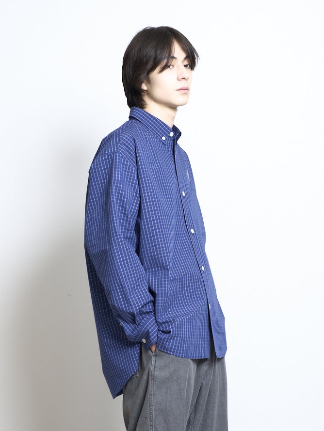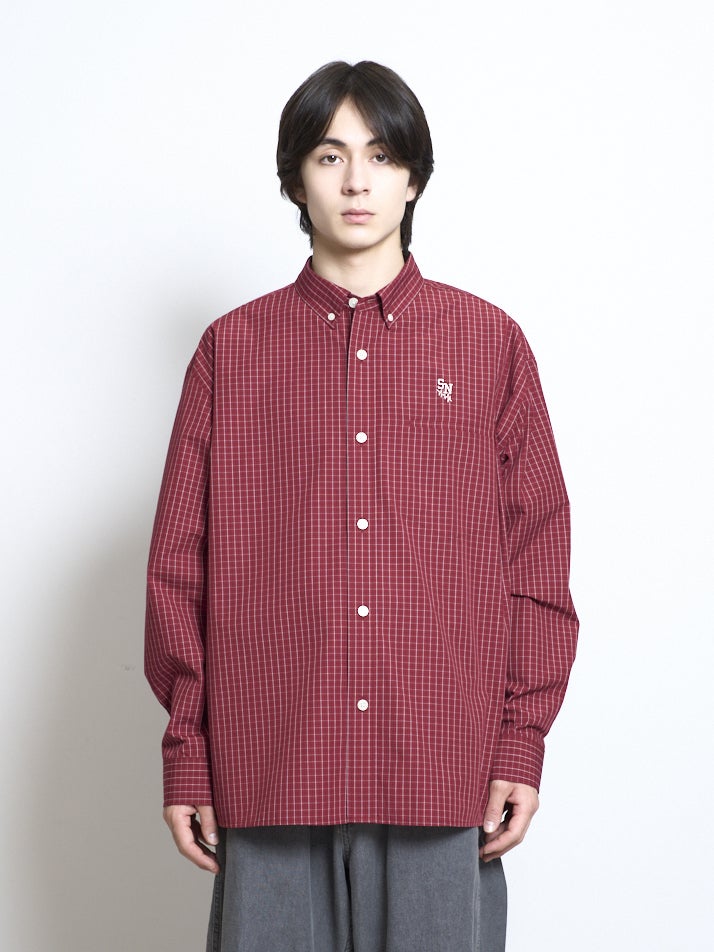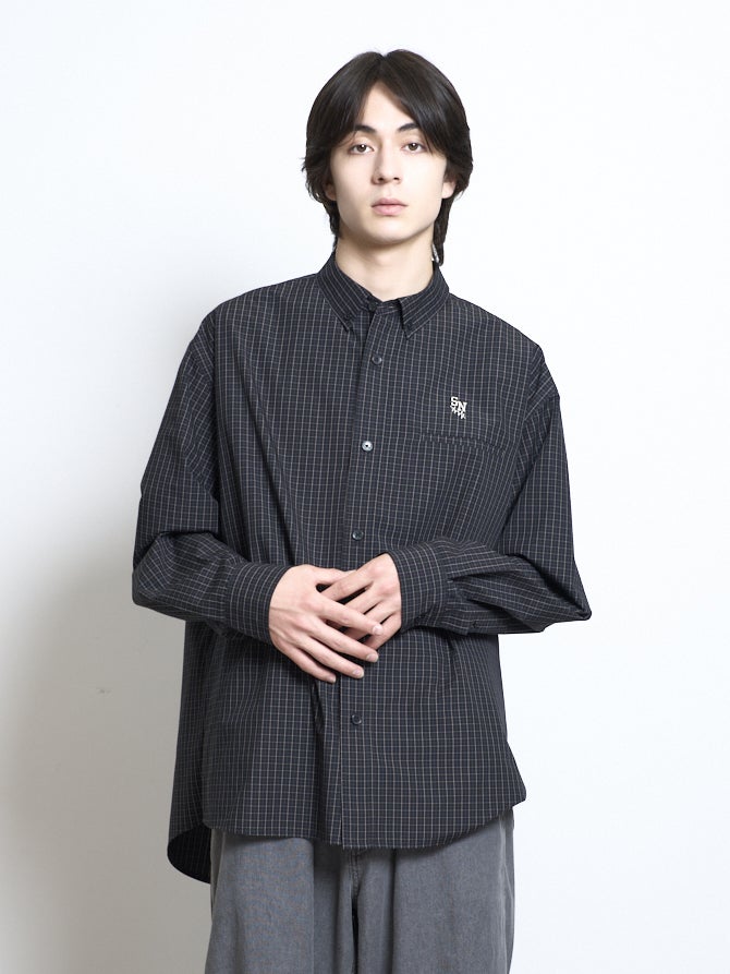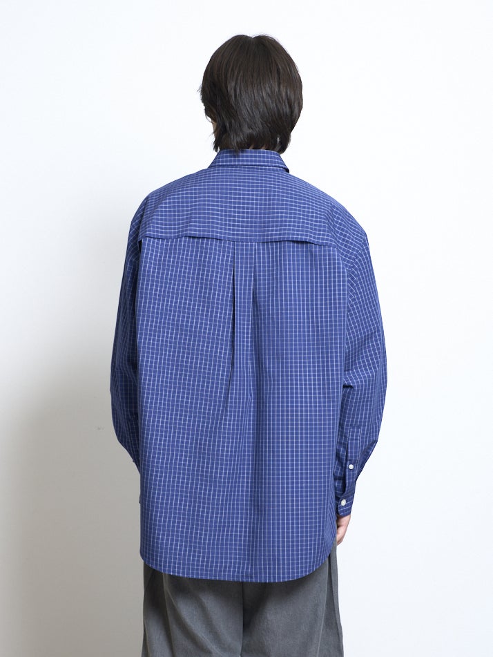 洗濯後しわになりにくいイージーケア加工をした素材のブロードチェックシャツ。シルエットは1枚でも羽織りでも使いやすいオーバーサイズシルエット。ブラック、レッド、ブルーの3色展開。