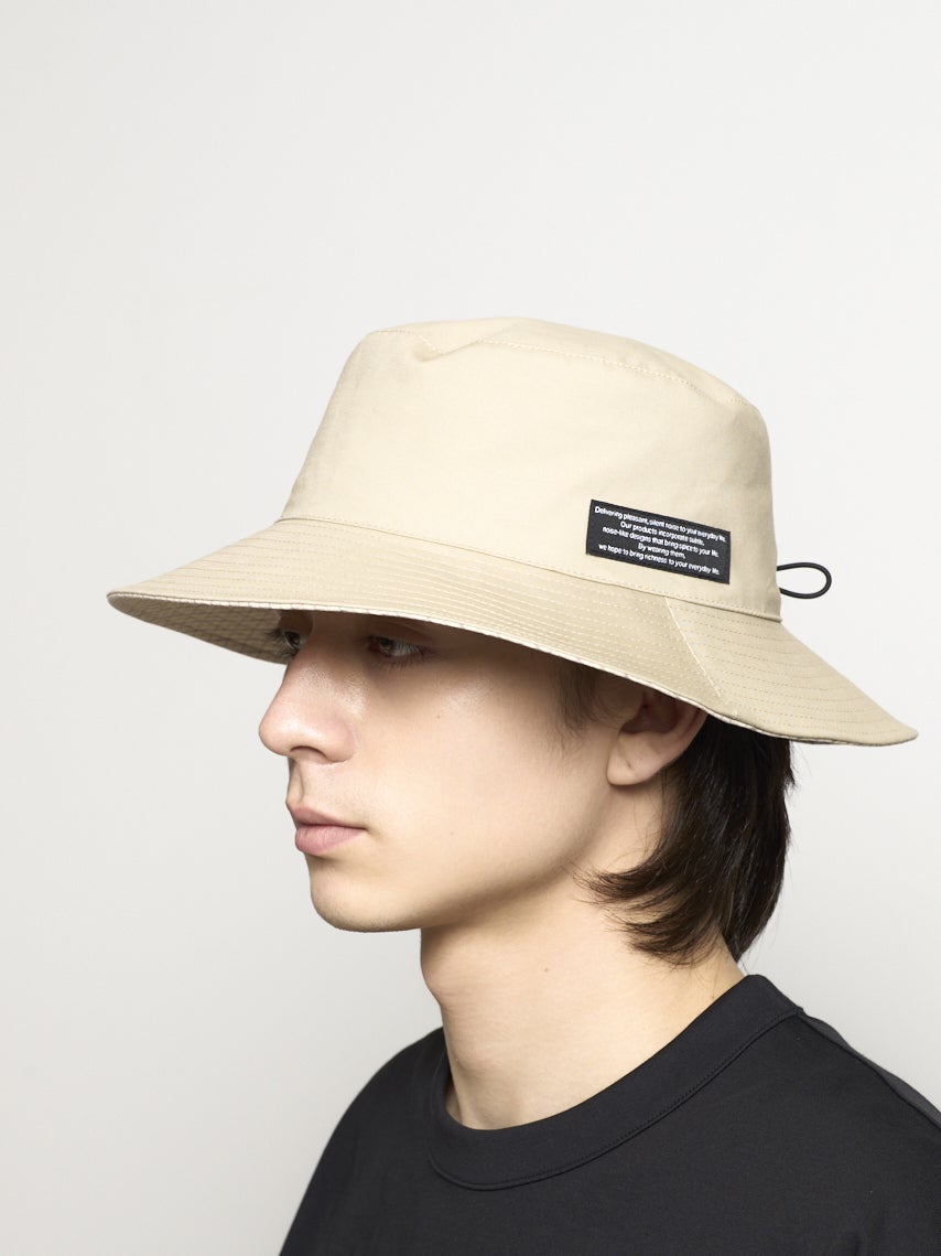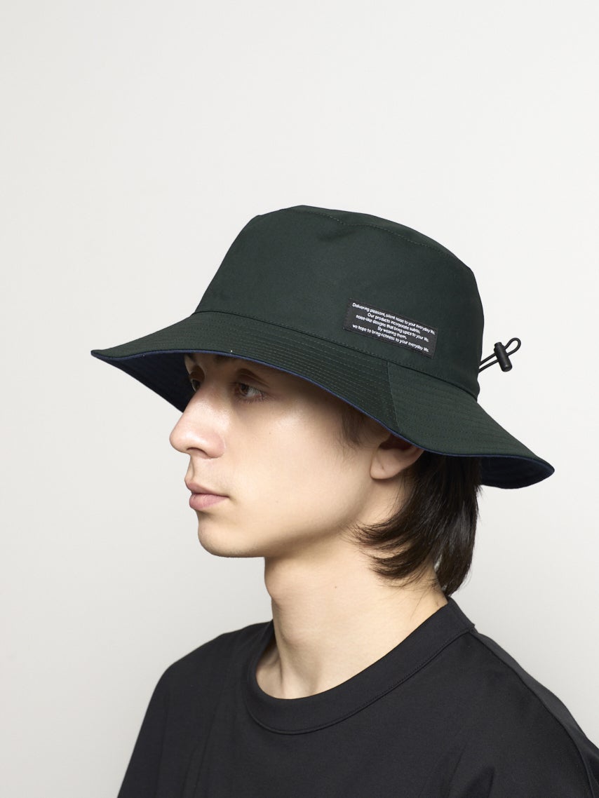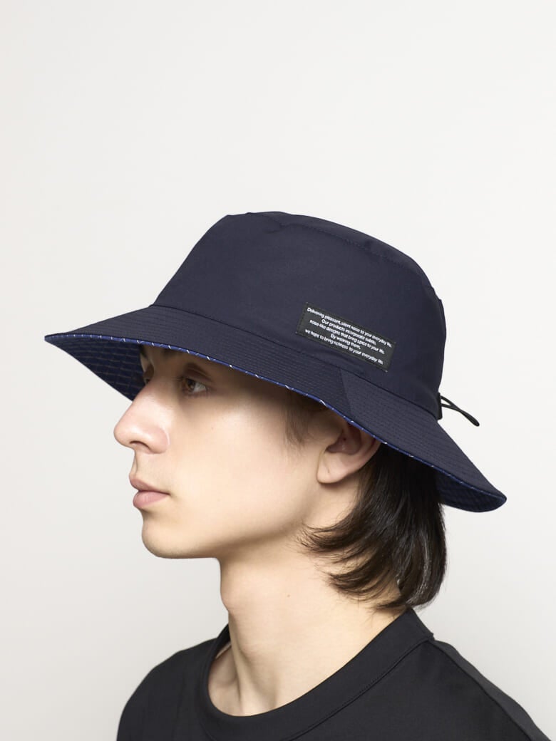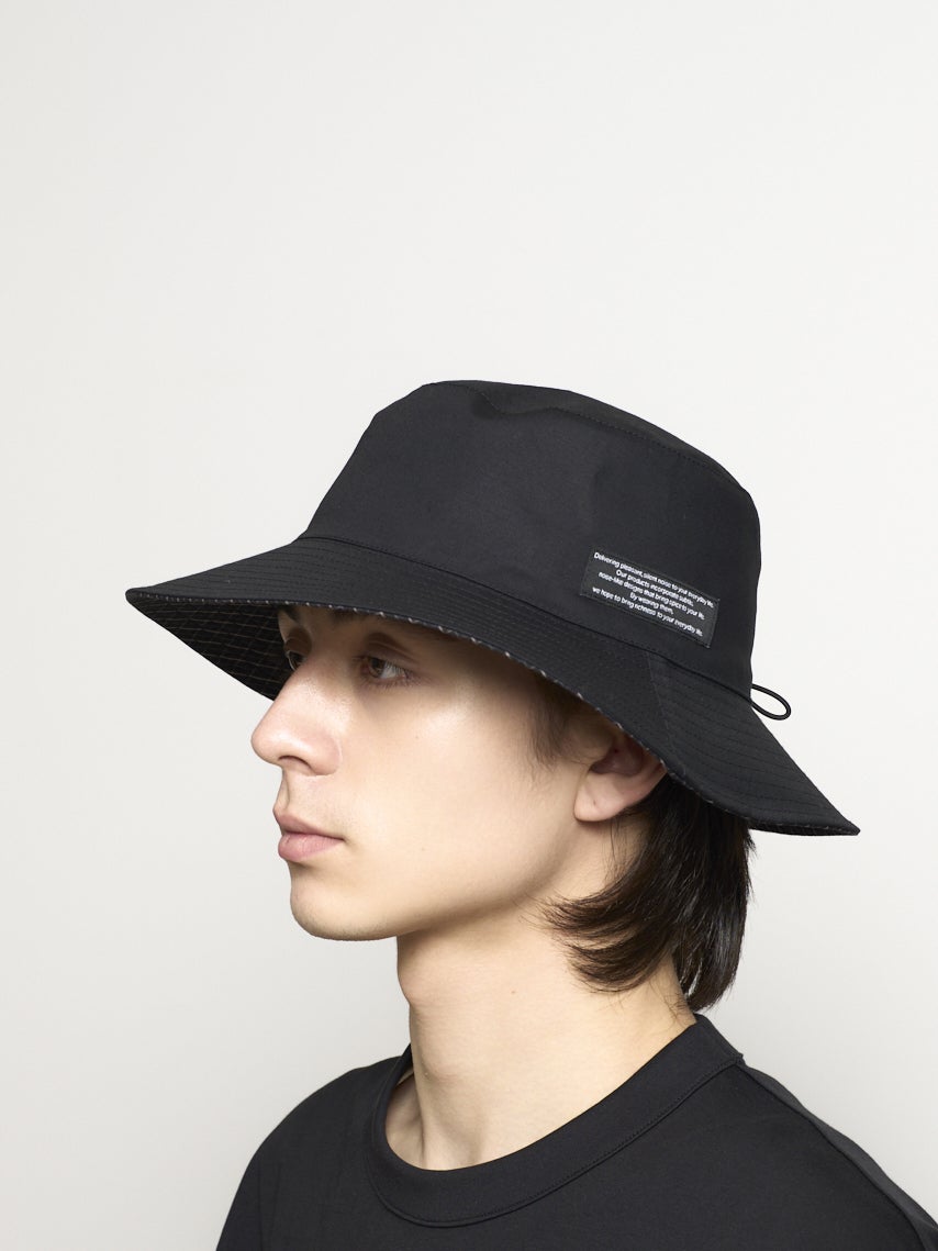 リバーシブルで着用できるバケットハット。それぞれ表が無地で裏がチェック柄になっている。