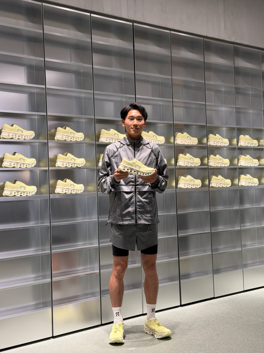 ここで、屋外5000mの日本人学生最高記録、ハーフマラソンの日本学生記録保持者であり、「On (オン)」アスリートの篠原倖太朗選手が登場。