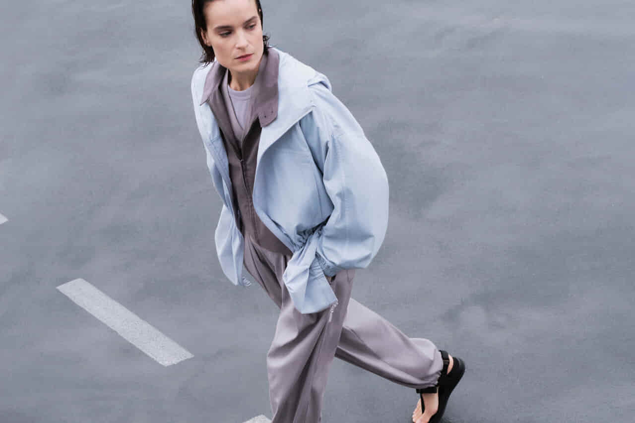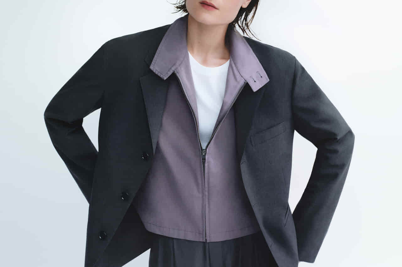 即戦力のアウターからはコンパクトな身ごろにゆったりとした袖を組み合わせたコットンブレンドショートブルゾンと、なめらかな素材を生かしたショートブルゾンがラインナップ。どちらも性別を問わずシーズンを通して活躍するアイテムだ。またボトムスとセットアップ可能な軽量ジャケットもメンズ、ウィメンズともに登場する。
