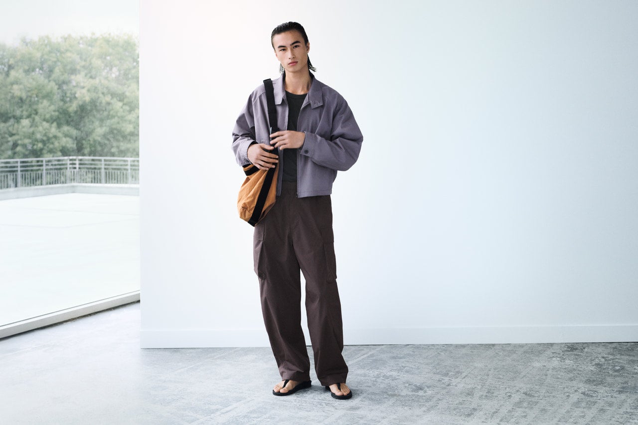 シルエットと素材のバランスを見直すことで定番のボトムスを現代的にアップデート。カーゴパンツは緩やかなカーブラインとワイドシルエットを採用し、立体的な表情に。ヴィンテージライクな色合いのジーンズには、メタルアイレットつきのベルトを合わせて、Uniqlo Uらしい着こなしを。