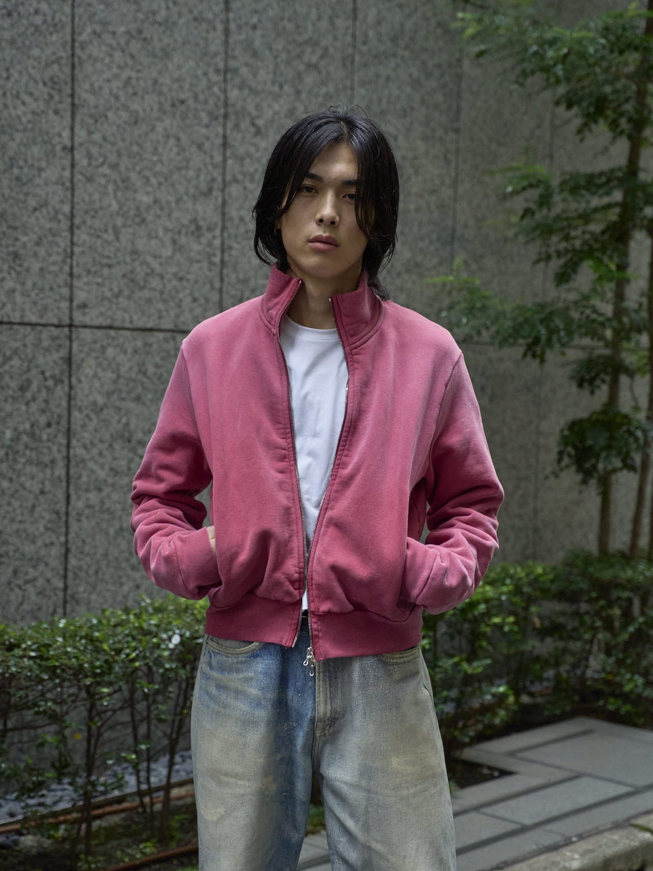 「ピンクのアイテムは初めての挑戦なのですが、このアイテムは色合いがよく、短丈でアームの長いシルエットも気に入っています!」