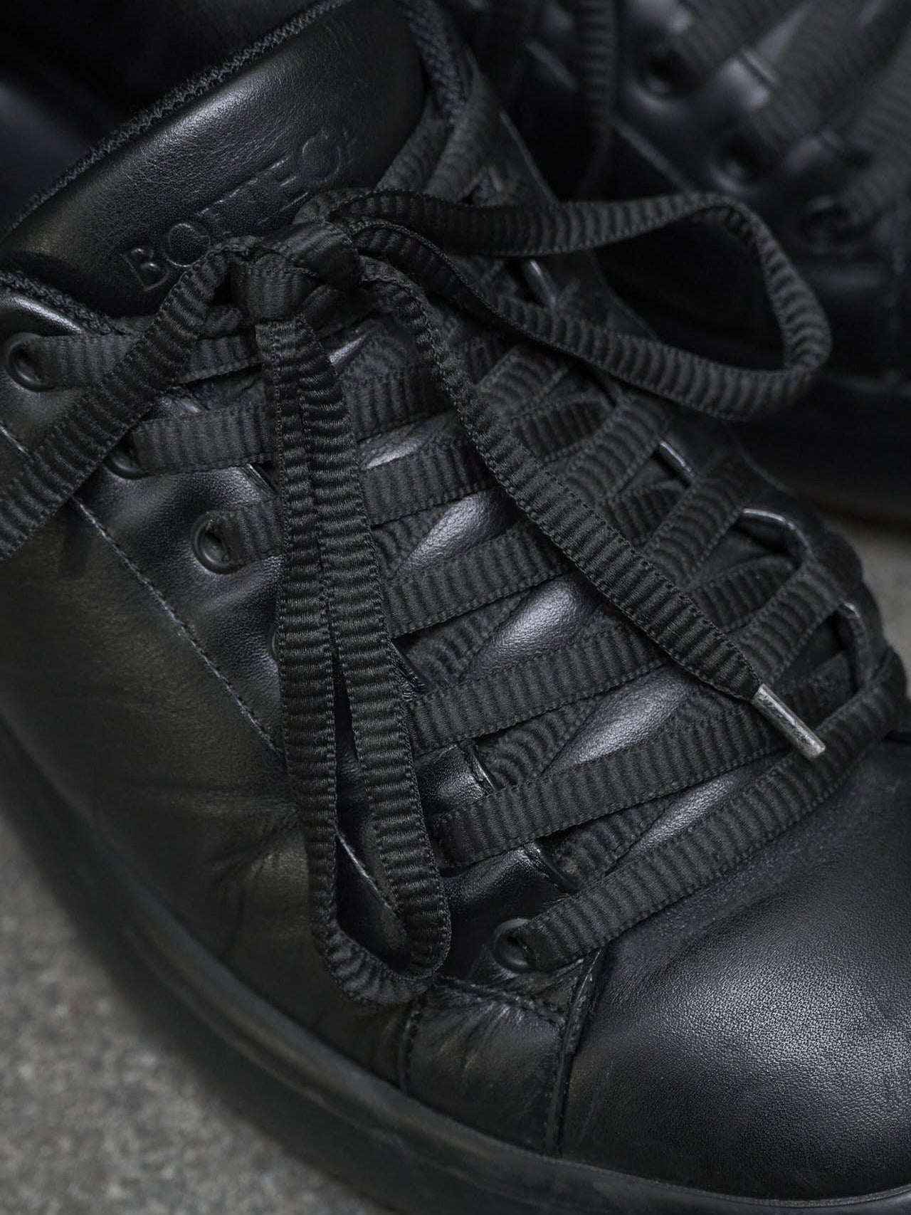 「ボリュームのある黒スニーカーを探していたところ、丸みのあるフォルムとレザーの光沢感が気に入り購入しました」。