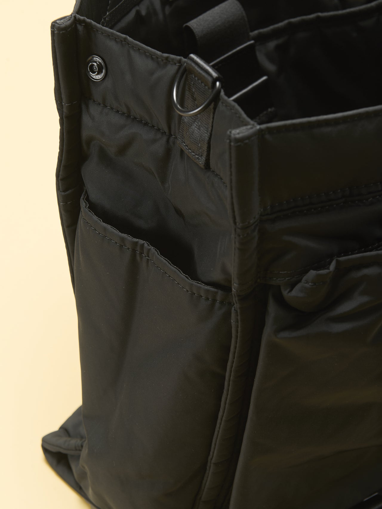 フロントとサイドのポケットには、指をかけて引くだけで瞬時にポケットを開けられるクイックプルを採用。