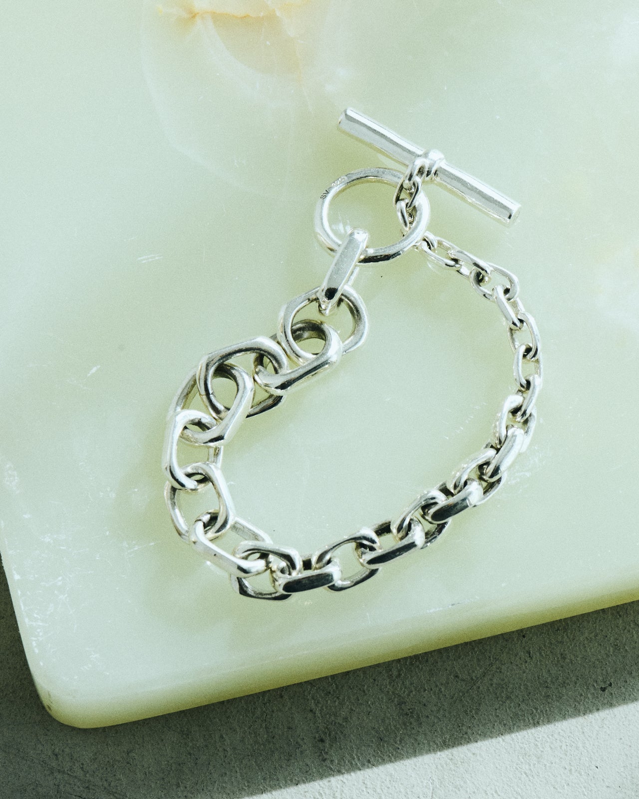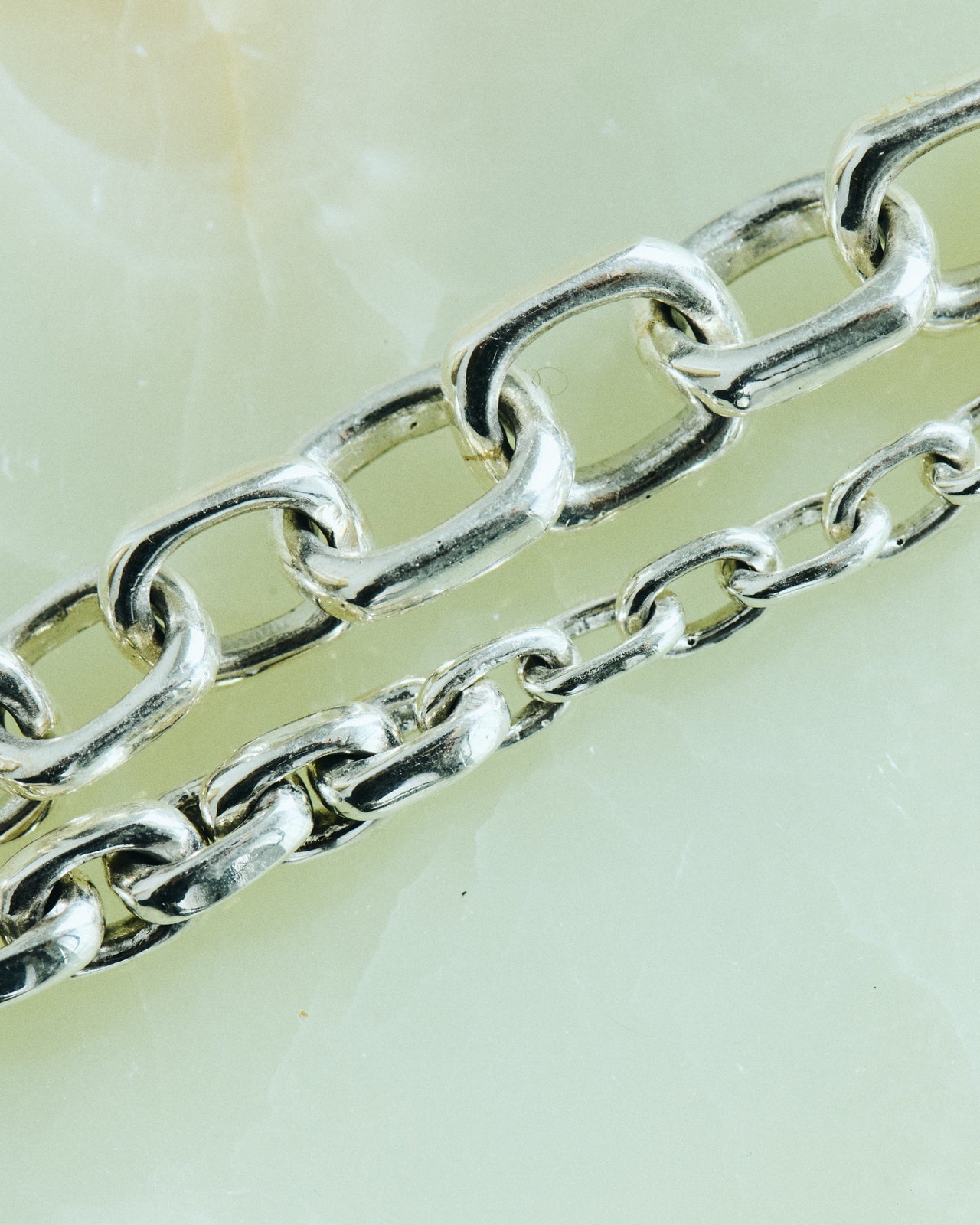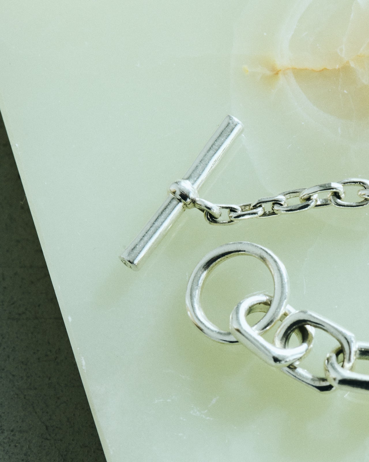「程よいボリューム感のシルバーアクセサリーは冬はニットにも負けないし、夏はTシャツに良いアクセントをつけてくれます。季節を問わず活躍するので個人的にはマストなアイテムです。丸みのあるチェーンのデザインなのでギラっとして見えないのもうれしいポイントです」。