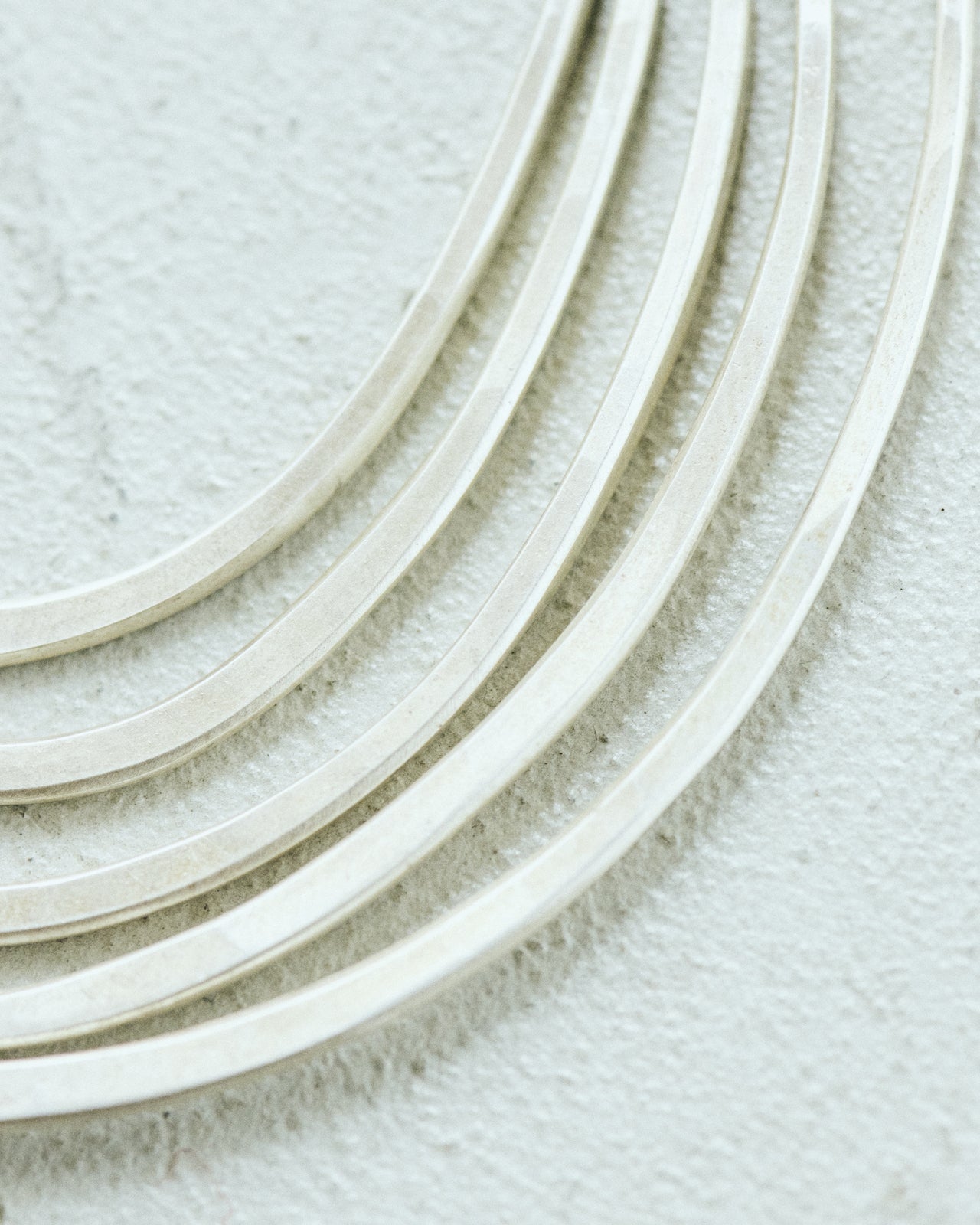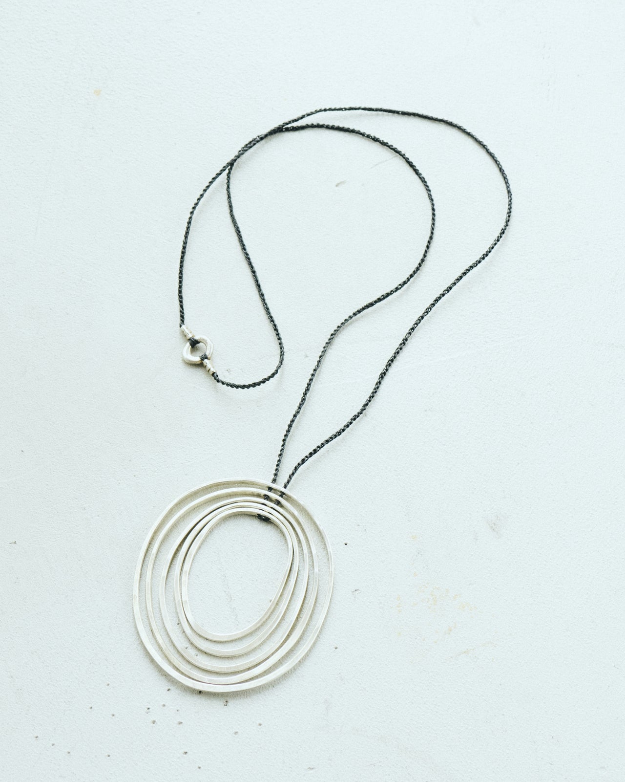 「ジル・プラットナーはジュエリーというよりも一つの彫刻作品として愛でています。デザイナー自身、ジュエリーデザイナーである前に彫刻家であるので、そういった背景も含めて好きなブランドです。なかでもこの『オーラ』というモデルはその名のとおり物体が纏うオーラ、雰囲気を彫刻により再現したもの。トゥアレグのような存在感とアブストラクトな印象がとても気に入っています」。