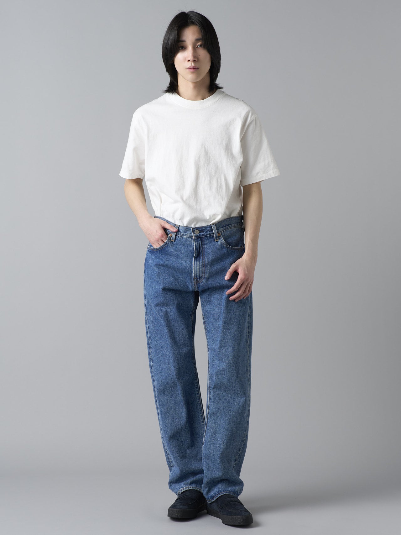 さて、シルエットについて。定番の「501®」や「505®」よりは太く、でも“ワイドパンツ”かというと、そうではない。スタンダードではちょっと物足りないけれど、トレンドど真ん中も気恥ずかしいという、色々穿いてきた服好きにこそわかる“こなれた太さ”になっている。