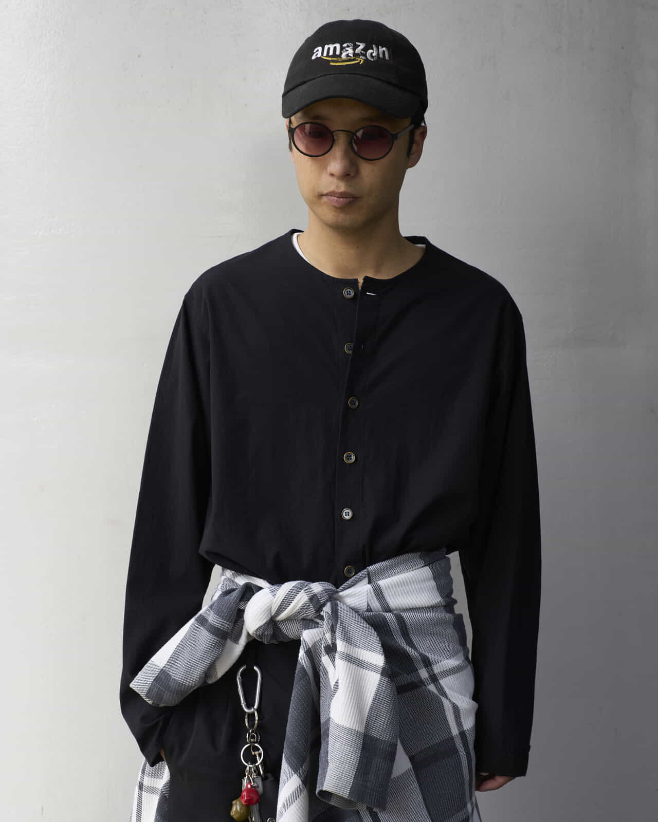 「シャツはYUTA MATSUOKAの26SSの新型。ロンTとシャツの中間をイメージしたをデザインで、襟もカフスもヨークも排除したミニマルな造りに。メインにもインナーにも着られるので重宝しています」。
