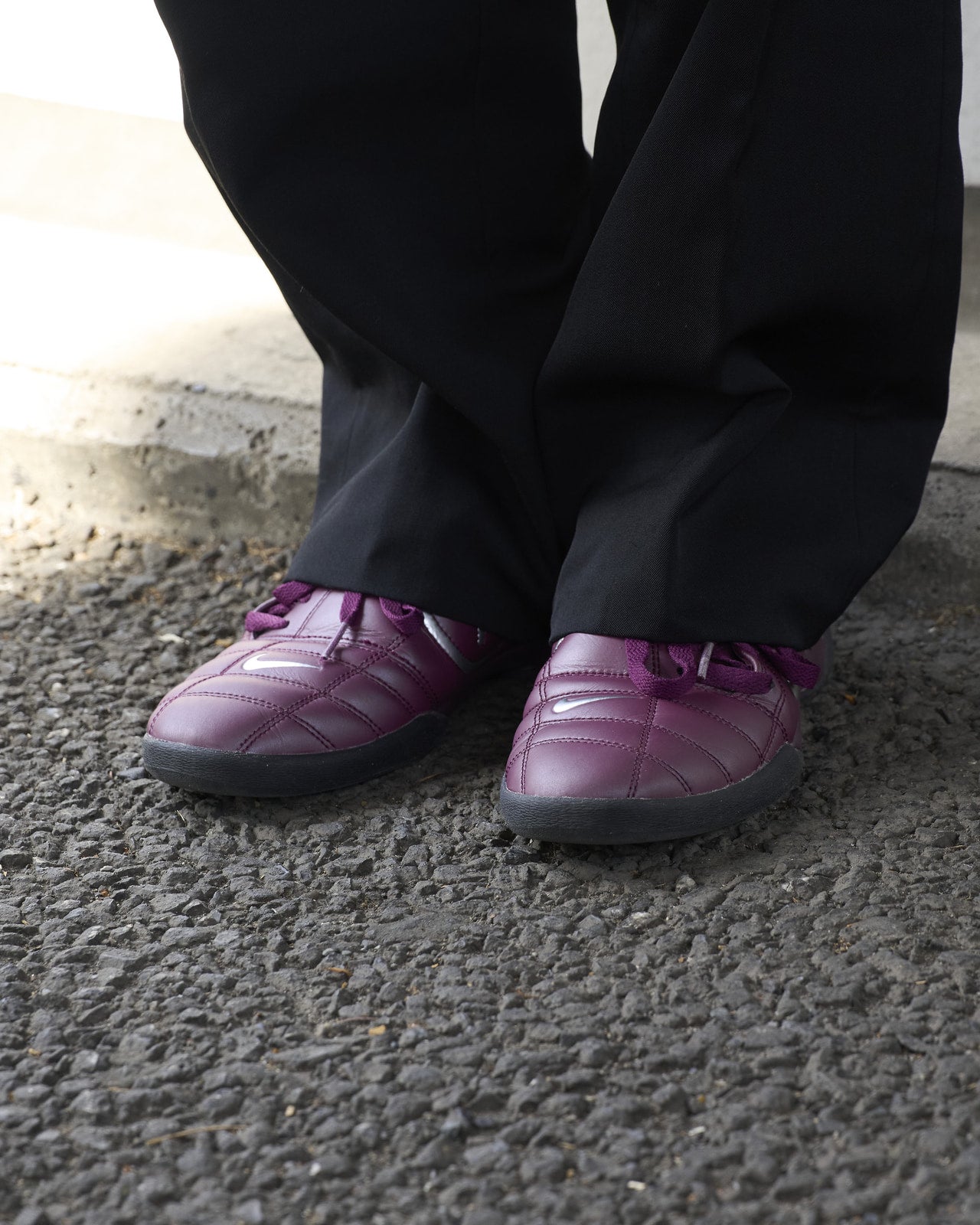 2000年に初登場したナイキのサッカースパイク「トータル 90」のストリートバージョン。「トータル 90」といえばロナウジーニョ、ルイス・フィーゴ、ロベルト・カルロス、フランチェスコ・トッティ、ウェイン・ルーニー、フェルナンド・トーレス...挙げたらキリがないほどの世界的なスター選手たちが当時履いていたモデルだ。その本格的なサッカースタイルを、普段使いに適したデザインにアレンジ。オリジナルのキルティング加工のアッパーと非対称のシューレース構造で、Y2Kの懐かしい雰囲気をまとって帰ってきた。