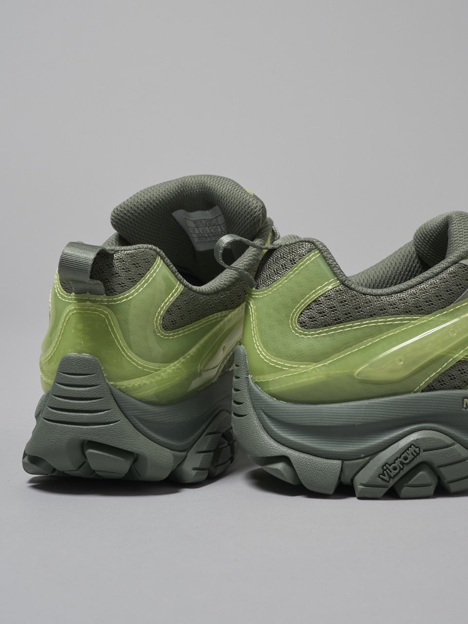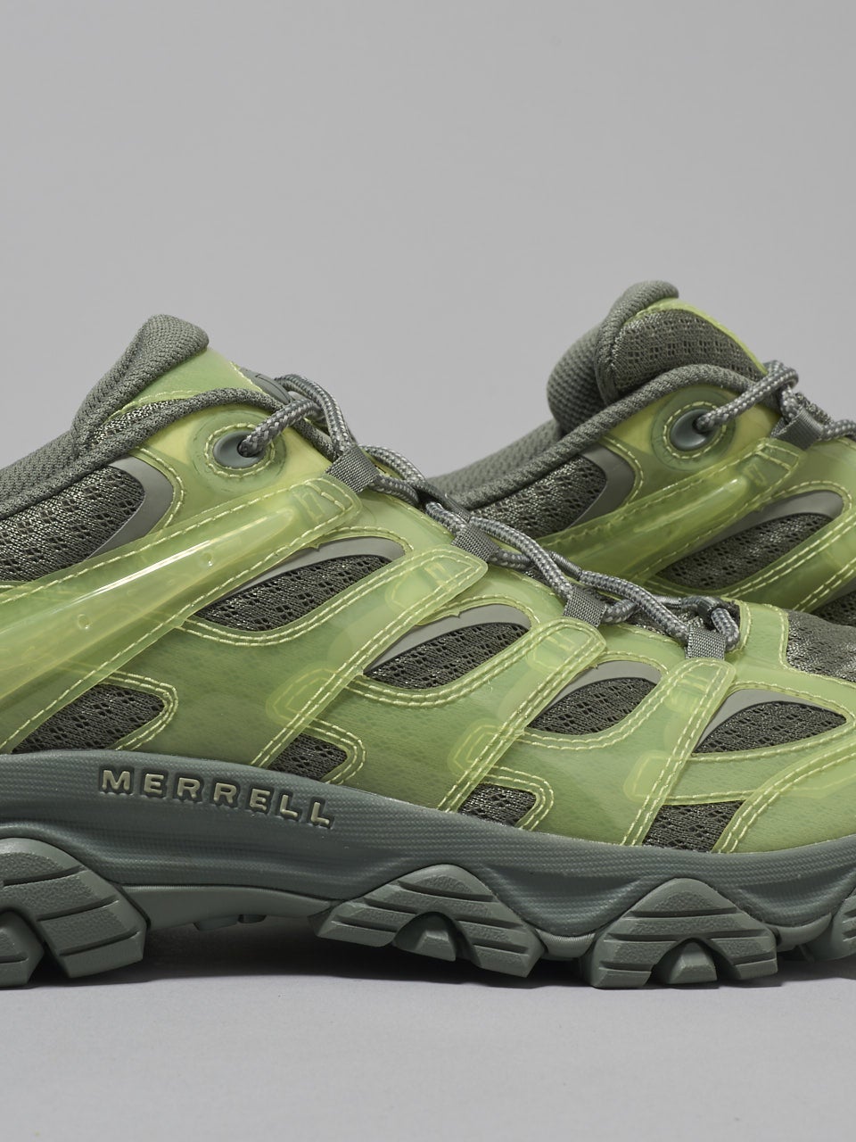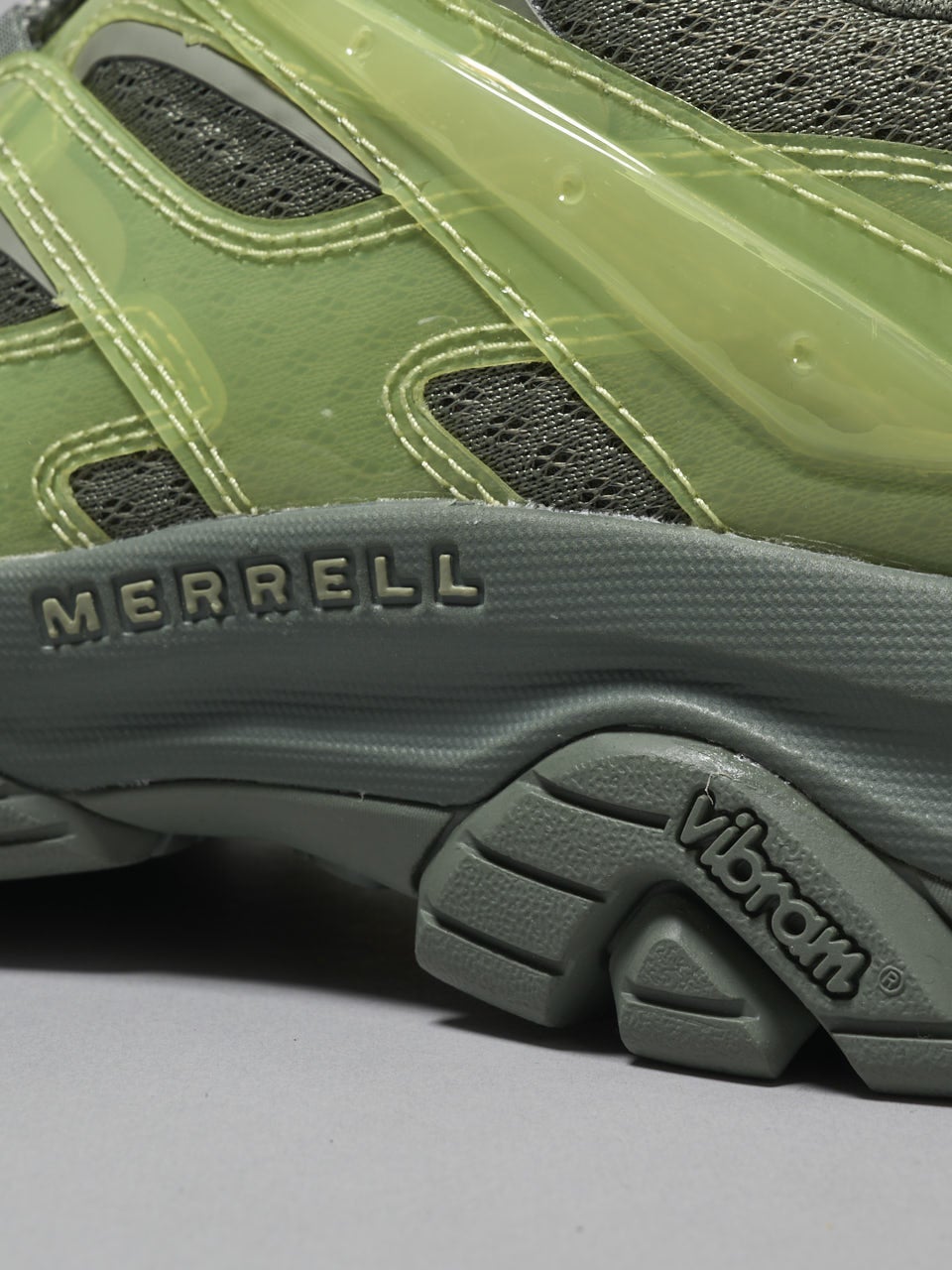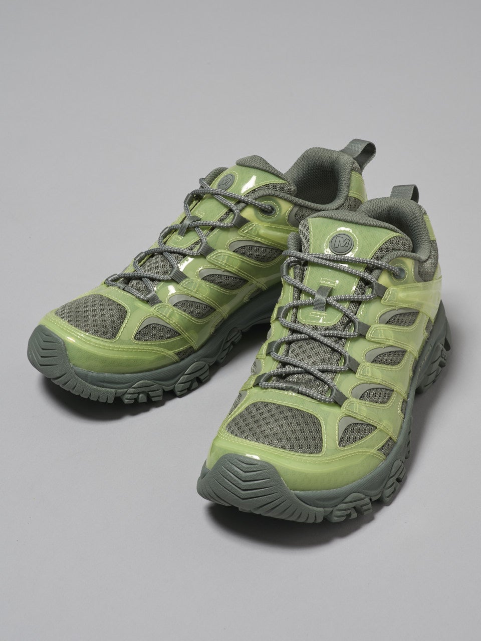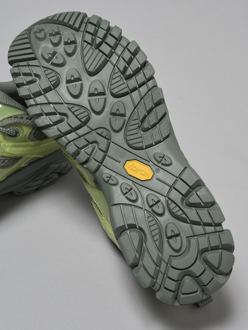 15年以上にわたり世界中のハイカーから支持されてきた「Moab」に、遊び心をプラスさせた「MOAB 3 JELLY」。最大の特徴は、“ゼリー”を思わせる半透明のユニークな質感と鮮やかなメロンカラーのアクセント。光を受けてほのかに透けるディテールが、従来のアウトドアシューズにはない軽やかさと存在感を生み出す。