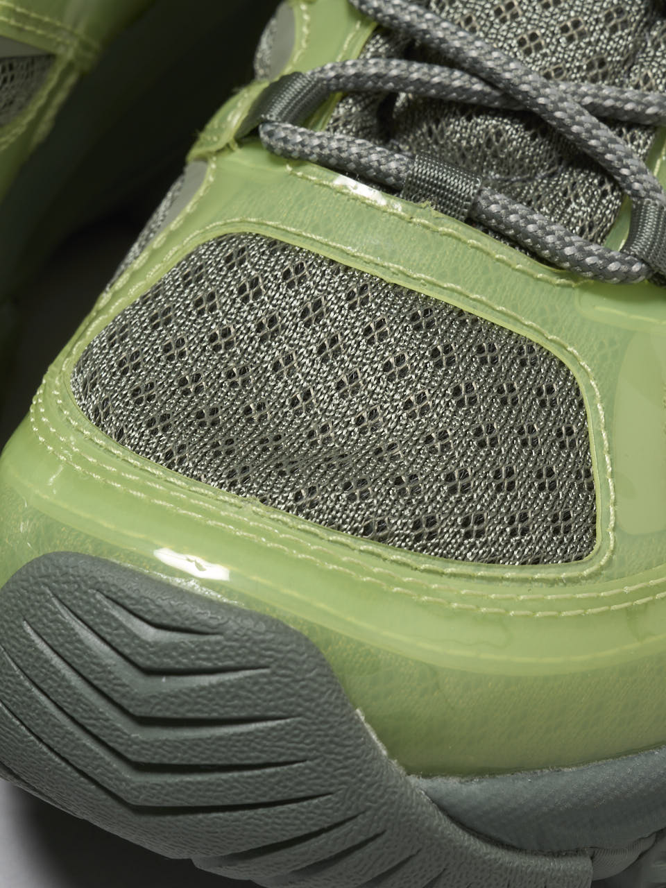 「“ゼリー”のような半透明のシンセティック素材がユニーク。こういう確かな機能を備えながら、足もとに遊びを効かせられるスニーカーってそんなに多くないと思います」。