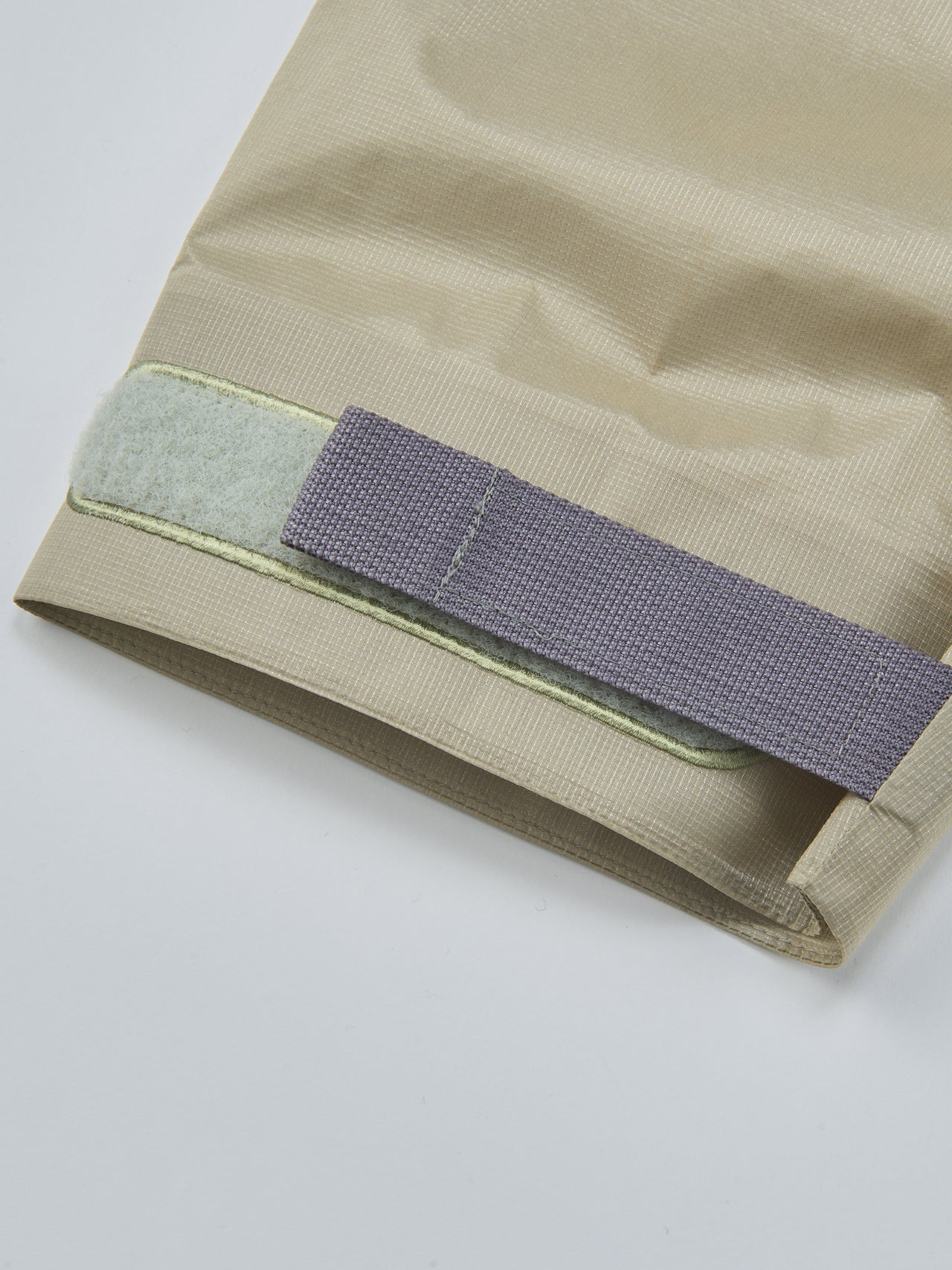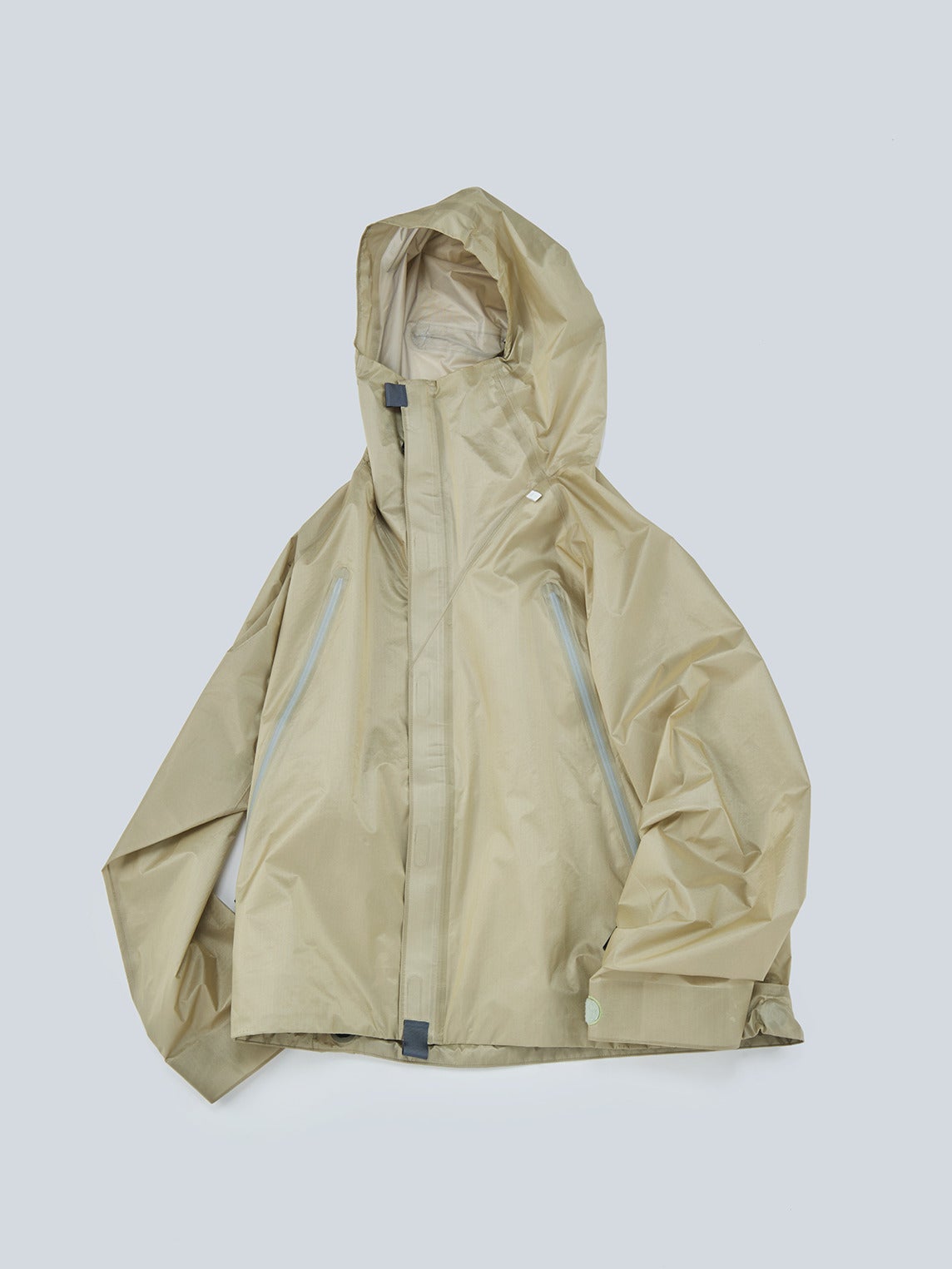 「春はベージュのナイロンジャケットが気分。軽量かつ透明感が特徴の生地は3レイヤー構造による防水仕様。直線的なカッティングでシルエットもユニーク」。
