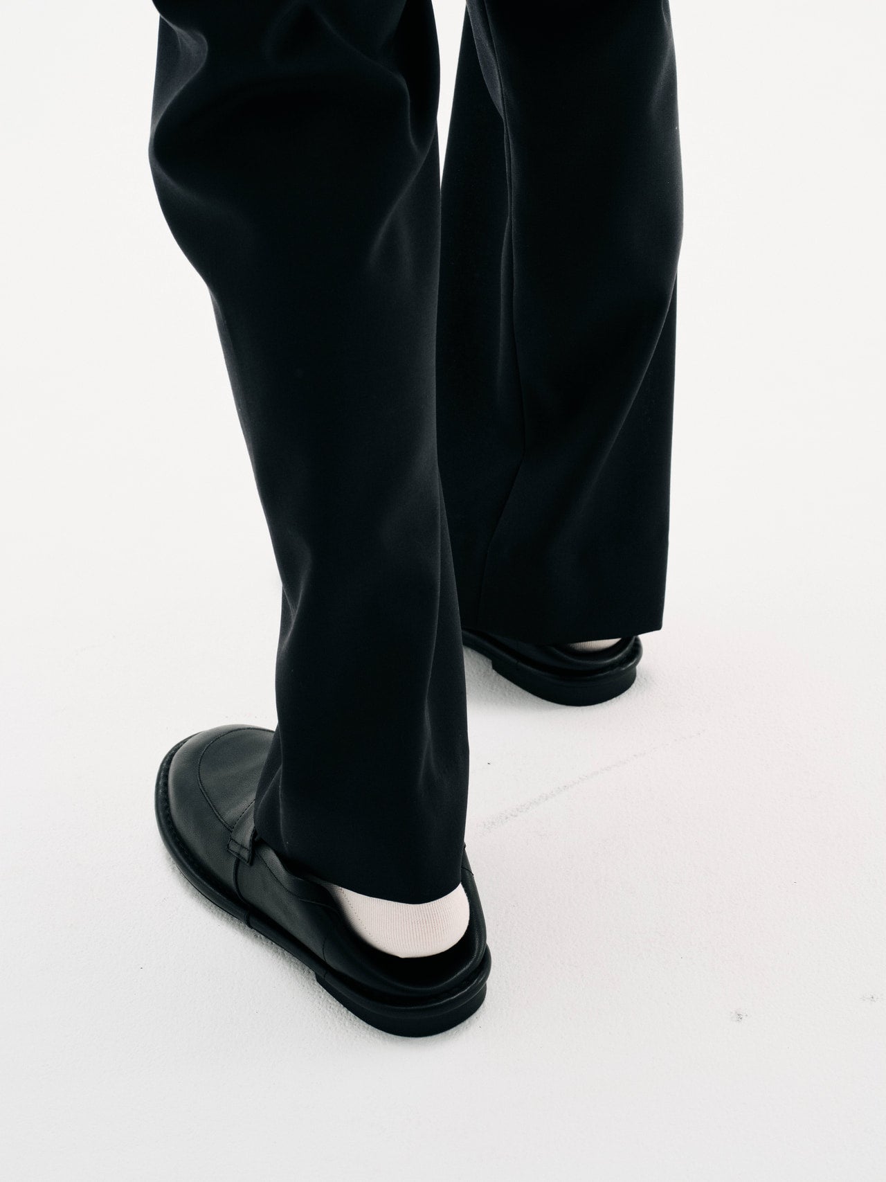 「パンツは軽い1タックのセミワイドシルエット。足もとにミュールシューズをチョイスして抜け感を出してあげるとバランス良く仕上がると思います」。