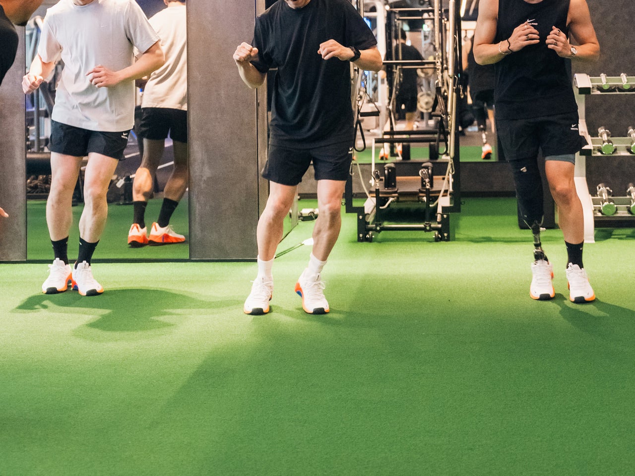 サーキットトレーニングに入ると、その違いはさらに明確に。前後のステップや方向転換では足運びが軽くテンポを落とさずに動き続けられる。(すごい)。3人1組で片足で立ち押し合う安定性のトレーニングでは、ヒールとミッドフットのホールド感がしっかり効いていて、多少の負荷がかかっても体がブレにくい。動きを止める、切り返すといった場面でも安心して力をかけられるのは大きいポイントだと感じた。