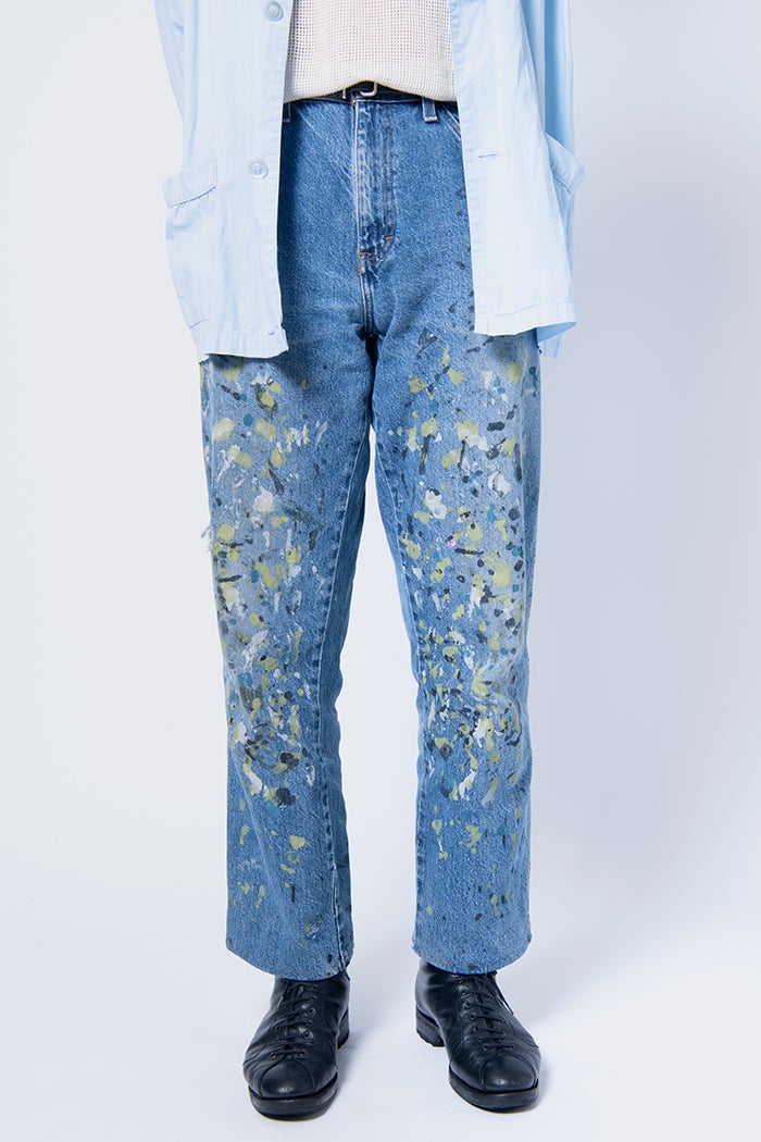 「ペイントデニムが今日の主役。三軒茶屋のTHREEで買った、ディッキーズの古着です。シャツも同じお店でゲットしたディオールのもの。涼し気な色合いを意識しています」