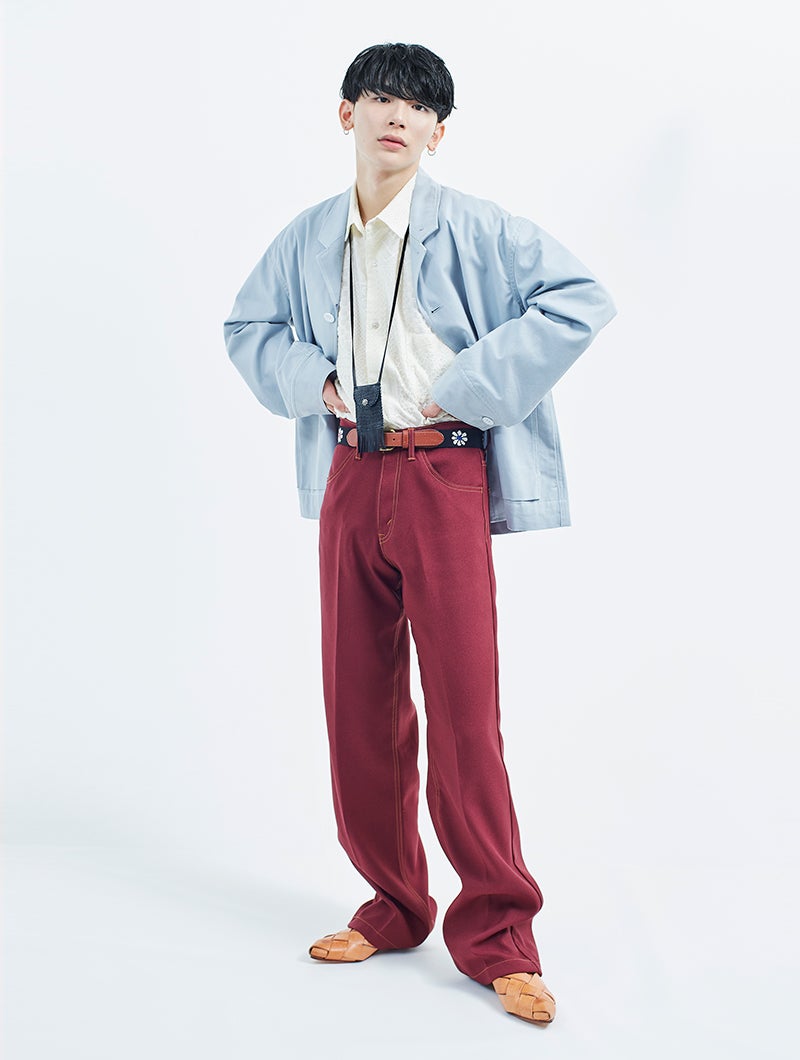 [写真下]ジャケット(シンヤコヅカ) ¥49,500/エムエイティティ[MAIL:info@the-matt.com] シャツ(イッツ インキンスピキュウス プレセンス)¥29,700・靴(フアン モンテス)¥30,800/deer nakameguro[MAIL:deernakameguro@gmail.com] パンツ(ダイリク)¥31,900/ダイリク[MAIL:d.dairiku@gmail.com] ネックポーチ(ウエストオーバーオールズ)¥12,100/ストール ショールーム[TEL:03-6812-9371] リング¥61,600/IVXLCDM 六本木ヒルズ[TEL:03-6455-5965] ピアス/本人私物 ベルト/スタイリスト私物