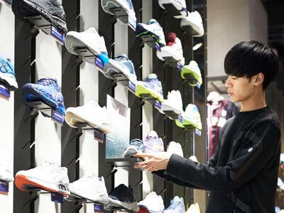 若林「さすがアシックスですね、本格的! 広くて洗練されていて、スポーツとファッションの両方をじっくり楽しめる空間だと思います」