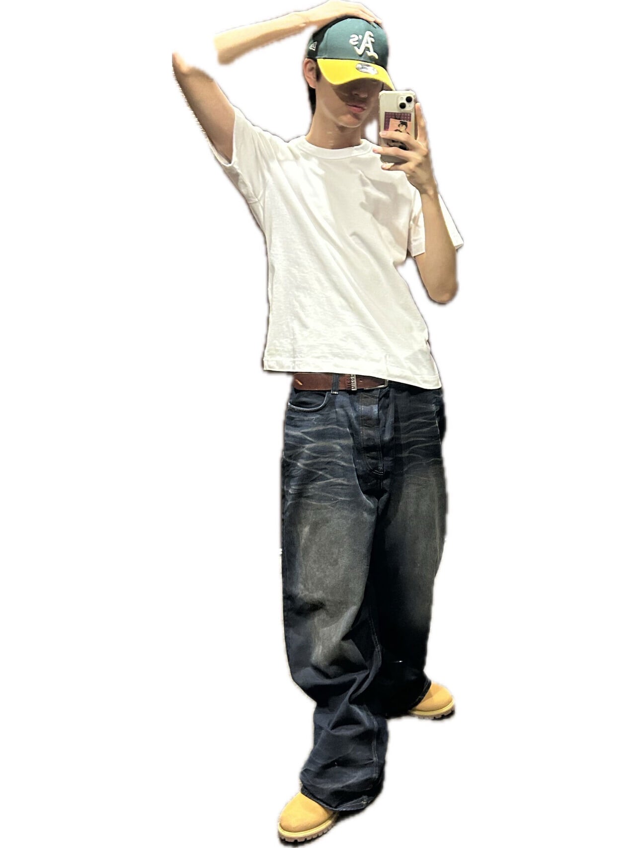 良い所は他にもあってですね、ダボダボのデニムをはく時に、デニムが靴に乗っかって引きずらないので、汚さずにみます!