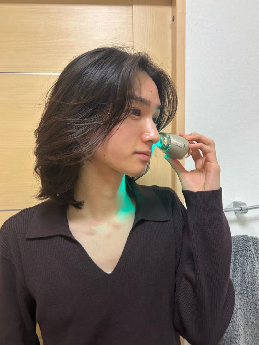 リフトアップって正直、もっと大人になってから気にするものだと思っていました。まだ20代だし大丈夫、と思っていた自分もいました。でも、どんなことも早めに対策することが大事なんですよね。将来必ずやってくる悩みを先取りしてケアすることは、自分の未来に投資しているような感覚なんです。だから僕は毎朝のスキンケアのあと、そして夜お風呂上がりのスキンケアのあと、1日2回欠かさずYA-MANの美顔器を使っています。今では歯磨きのように完全に習慣になっていて、使わないと逆に落ち着かないくらいです。
