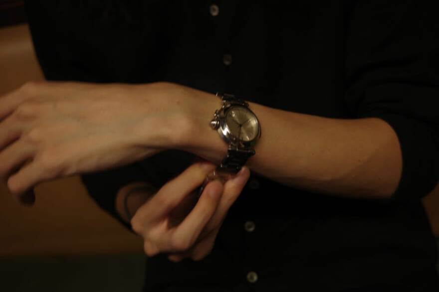 最近は、時間を確認するためというよりも、この時計を身につけることで気持ちが引き締まったり、自分らしくいられるからつけています。ふとした瞬間に文字盤を見て、頑張ろう! と思えるのも、この時計がそばにあるからこそ。