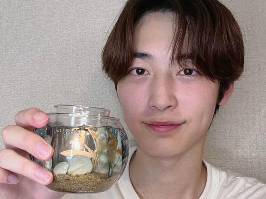 「僕の愛用品は“アロマキャンドル”です。このアロマキャンドルは、去年の誕生日に友人とオーストラリアへ行った際に、友人からサプライズでプレゼントしてもらった、大切なものです」