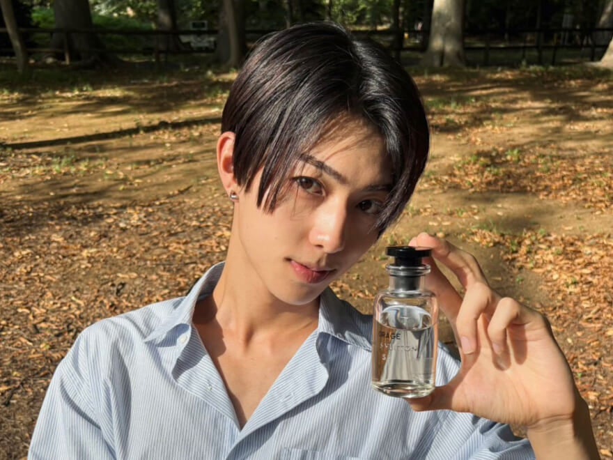 「今回紹介する僕の愛用品は LOUIS VUITTONの香水『ORAGE(オラージュ)』 です。今年の誕生日に友達からプレゼントしてもらったもので、それ以来、外出の時は欠かさずつけています」