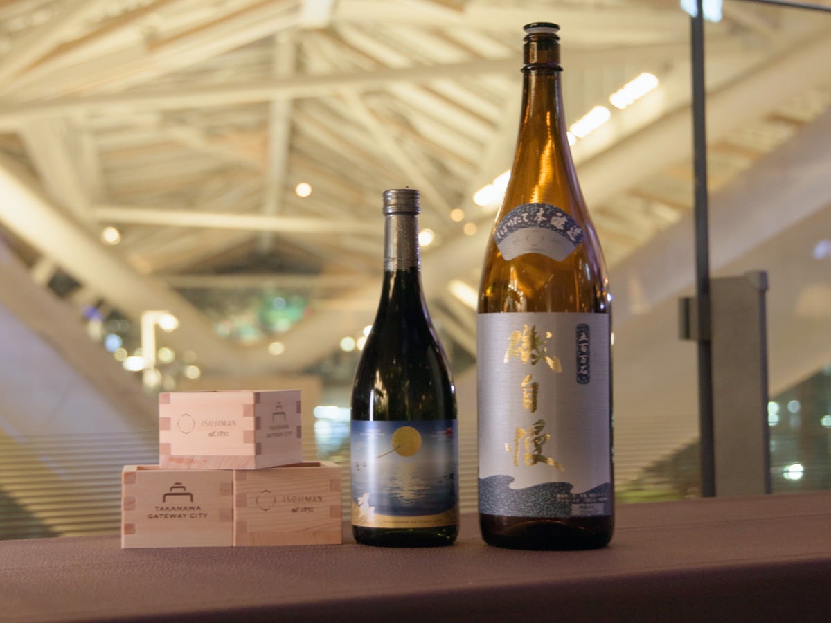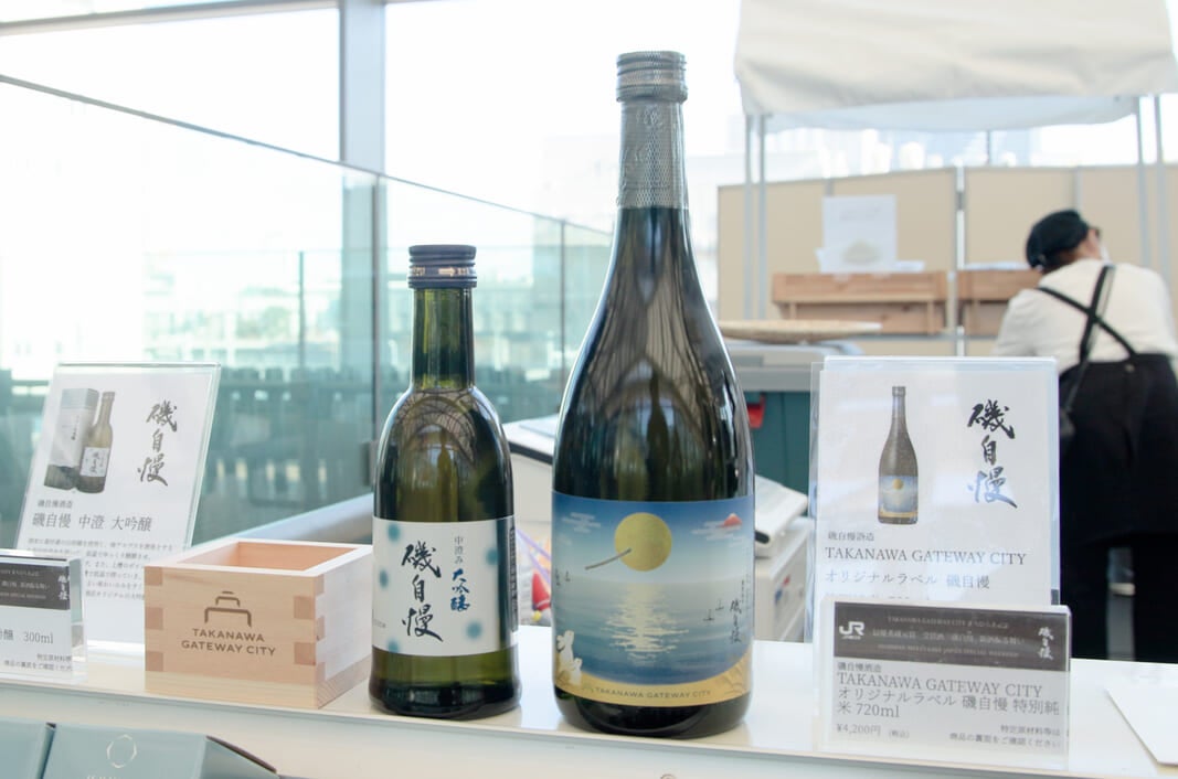 提供される日本酒は、「磯自慢 純米吟醸」と「TAKANAWA GATEWAY CITY オリジナルラベル 特別純米」の2種類。いずれも山田錦と南アルプスの名水を使用した、香り・旨味・キレが際立つ上質なラインナップだ。