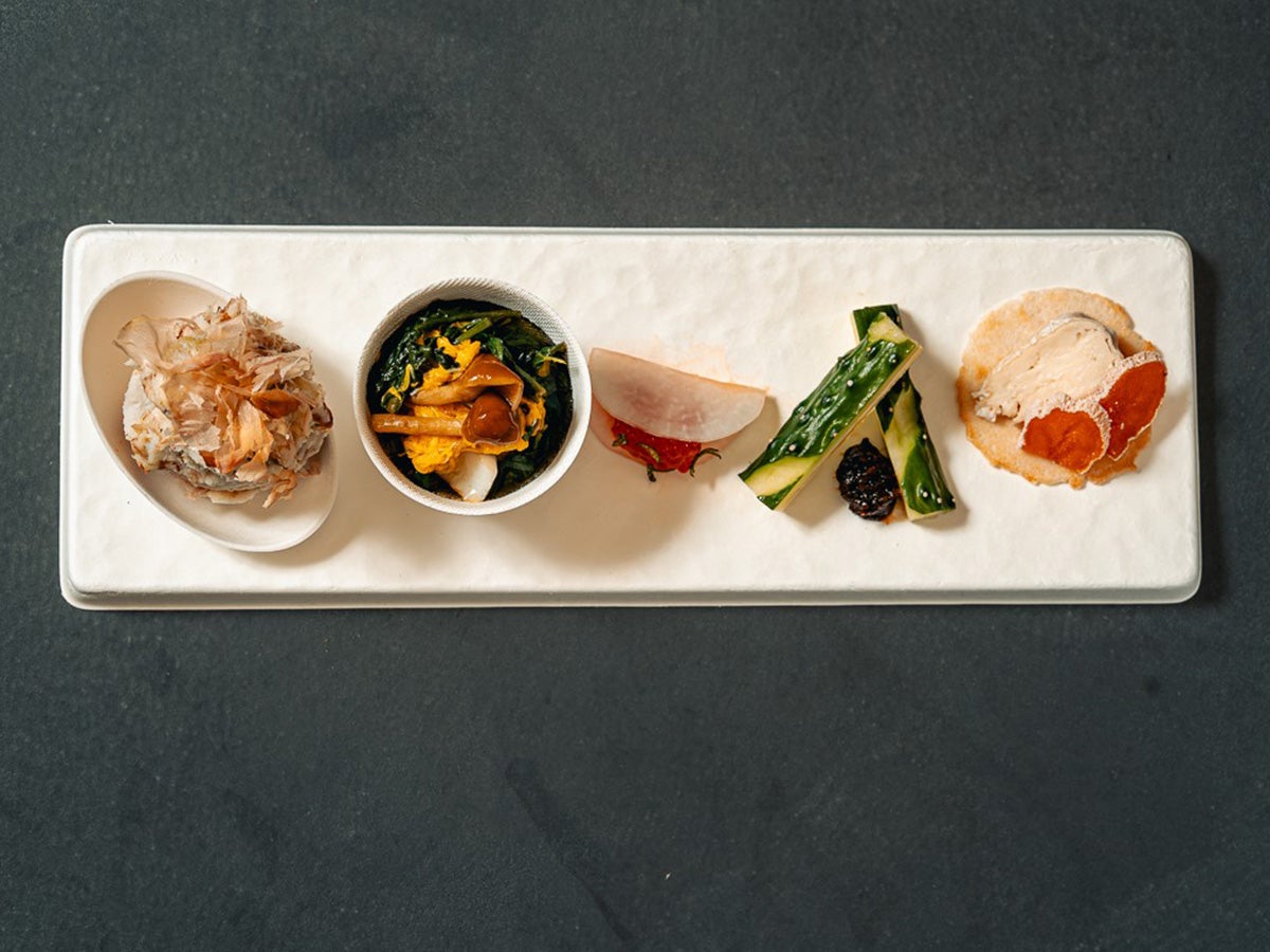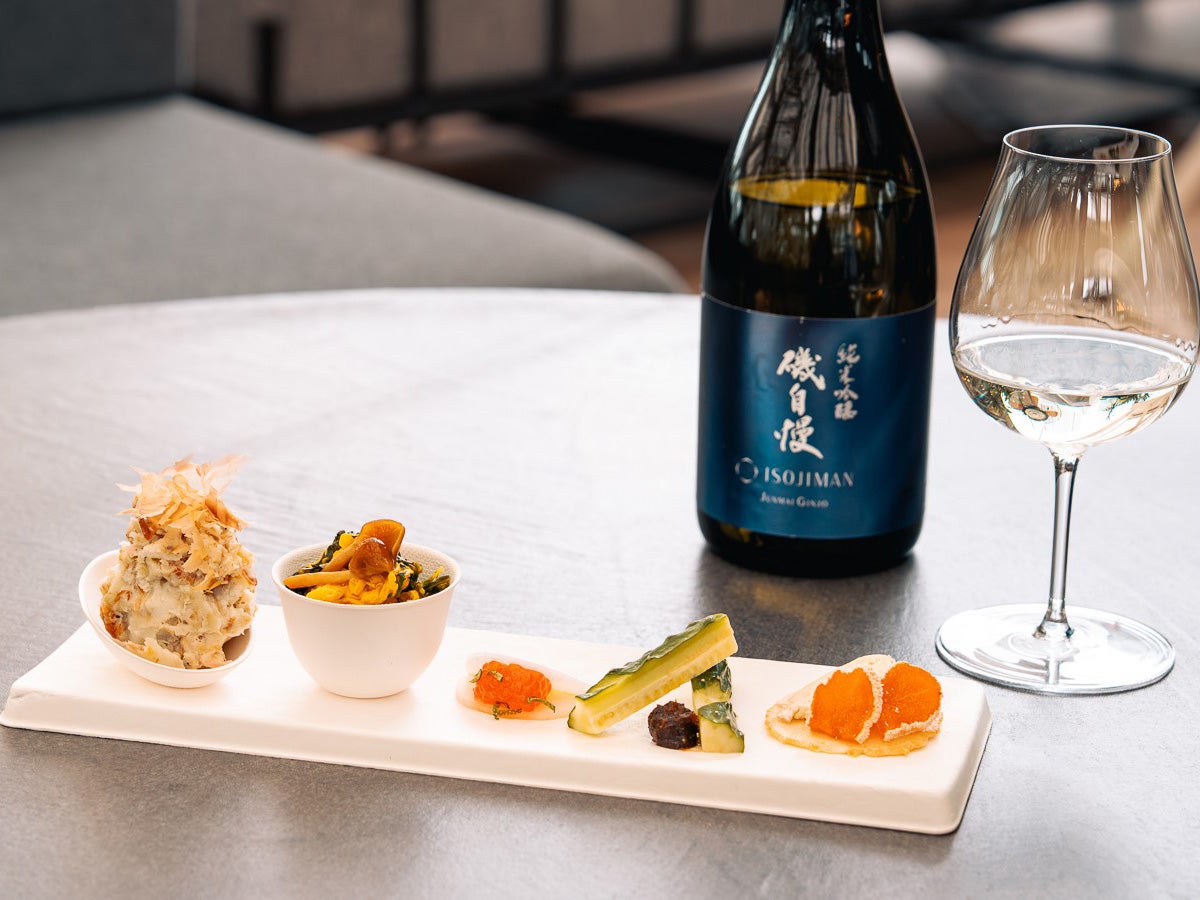 12月15日(月)までの期間、同施設の『MAISON CLASSIC SALON』では、磯自慢と東日本食材を組み合わせた特別フードペアリングを提供。三陸の筋子、蔵王の麹漬けチーズ、笹かまぼこなど、地域の名品とともに日本酒を味わえる。