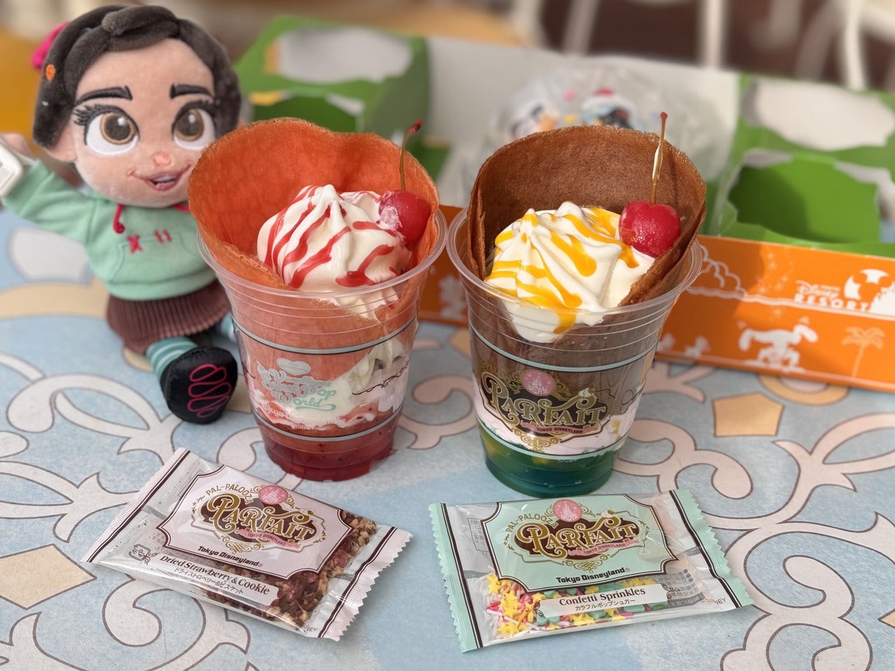 ペイストリーパレスでは、パルフェをイメージしたパフェカップやポーチに好きなお菓子を詰め合わせて、自分だけのオリジナルスウィーツセットを作ることができる催しを開催中。作ったセットの中身は、パークでの食べ歩きにもぴったり!