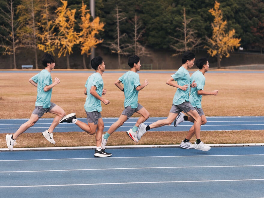 藤原監督 ヴェイパーフライ、 アルファフライのようなスーパーシューズが登場してから、強度の高い練習を質高くこなせるようになったというのが大きいです。例えば1000m×10本のようなハードなメニューでも、以前より速いタイムで追えますし、その高い質を維持したまま練習を続けることができます。それでいて、故障リスクが低い。箱根に向けて攻めた練習を継続できるようになったのは、このシューズの恩恵が非常に大きいです。