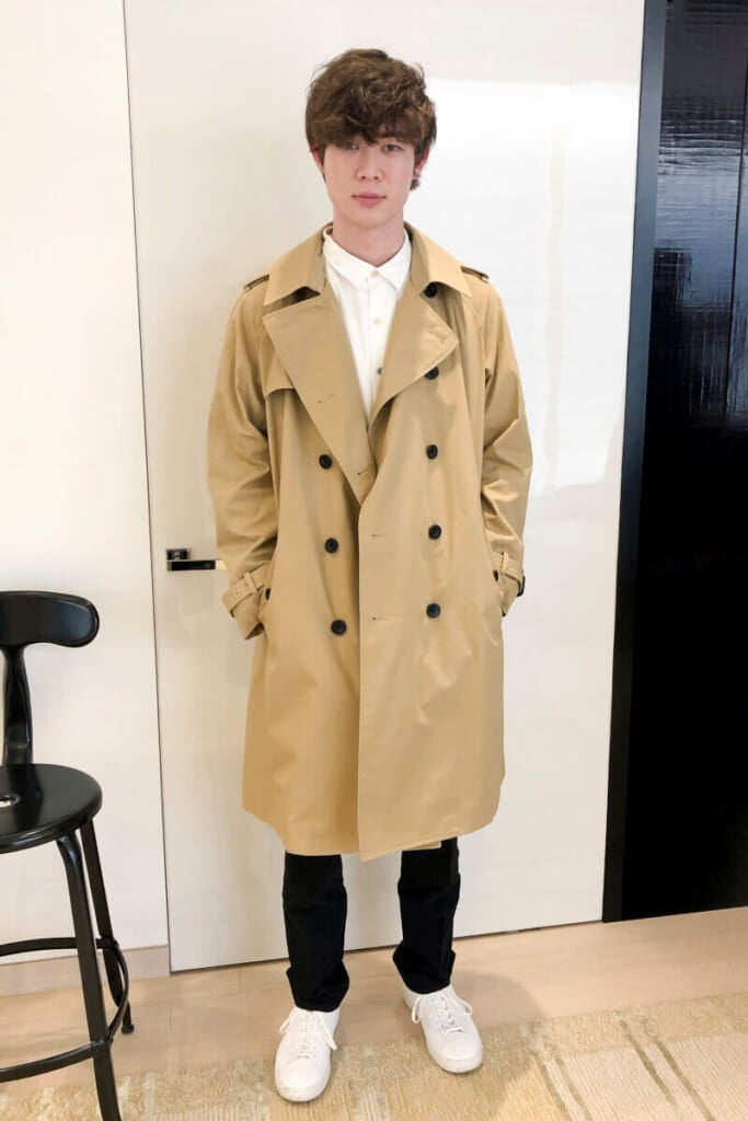 『一見かっちりキメている感じに見えるけれど、白スニーカーで着くずしているのがポイントです。白シャツも、清涼感と抜け感があるアイテムなのでいいですよね。』
