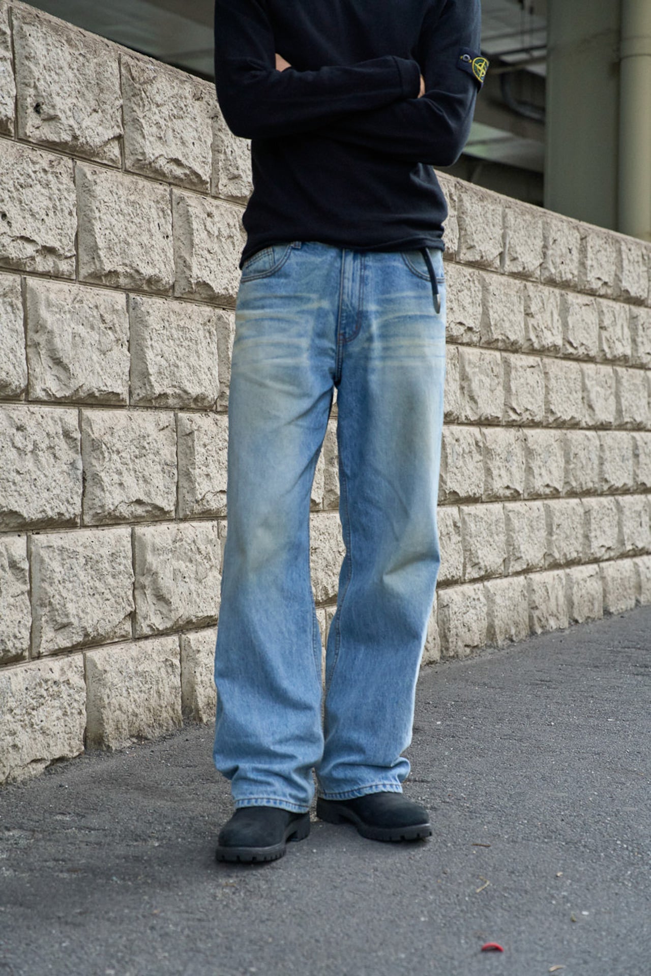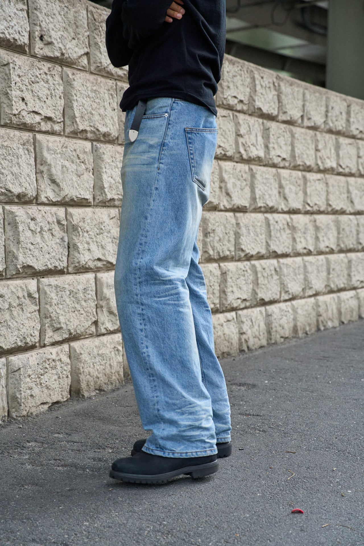 「ボトムは韓国発のブランド、クアーのデニム。ヴィンテージ加工がされていて、新品だけど味があるディテールに惹かれました。ベルトも韓国のストリートブランド、ノーマニュアルで購入」。